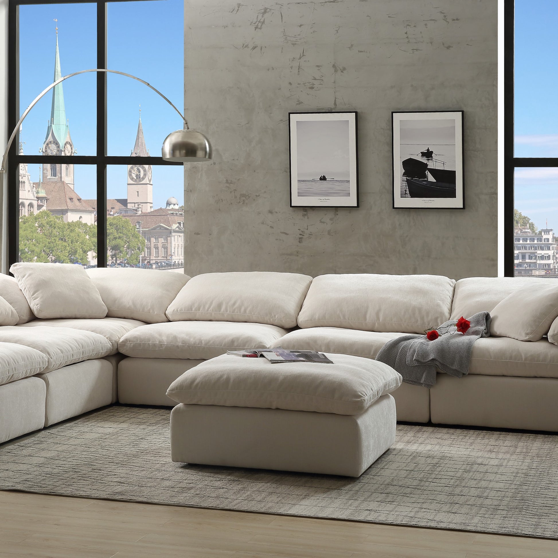 Ivory Ottoman With Removable Cushion Ivory Linen Primary Living Space Backless Solid Contemporary,Modern Square Armless Foam Linen