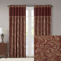 For a luxuriously classic style, our Madison Park Aubrey Window Curtain Pair is the perfect touch to your decor. The alluring jacquard weave is inspired from an updated paisley motif and is woven in beautiful hues of burnt red, gold, and a hint of platinum for a shimmering accent. The window panels are pieced with solid faux silk and beautiful flat piping details in gold, creating an elegant look. While also achieving the Oeko-tex certification, meaning it does not contain any harmful substances or chemicals, ensuring quality comfort and wellness. Rod pocket or back tabs top finish makes this curtain easy to hang, open, and close panels throughout the day; while fitting up to a standard 1.25" diameter rod. Coordinating bedding is also available and sold separately.