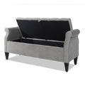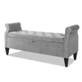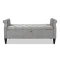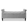 Jacqueline 57.5" Tufted Roll Arm Storage Bench, Opal Grey Velvet Gray Foam Velvet