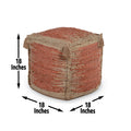 Jafar Square Handwoven Jute Pouf Red Red Fabric