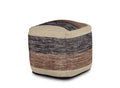Jamal Square Handwoven Woolen Pouf Beige Beige Fabric