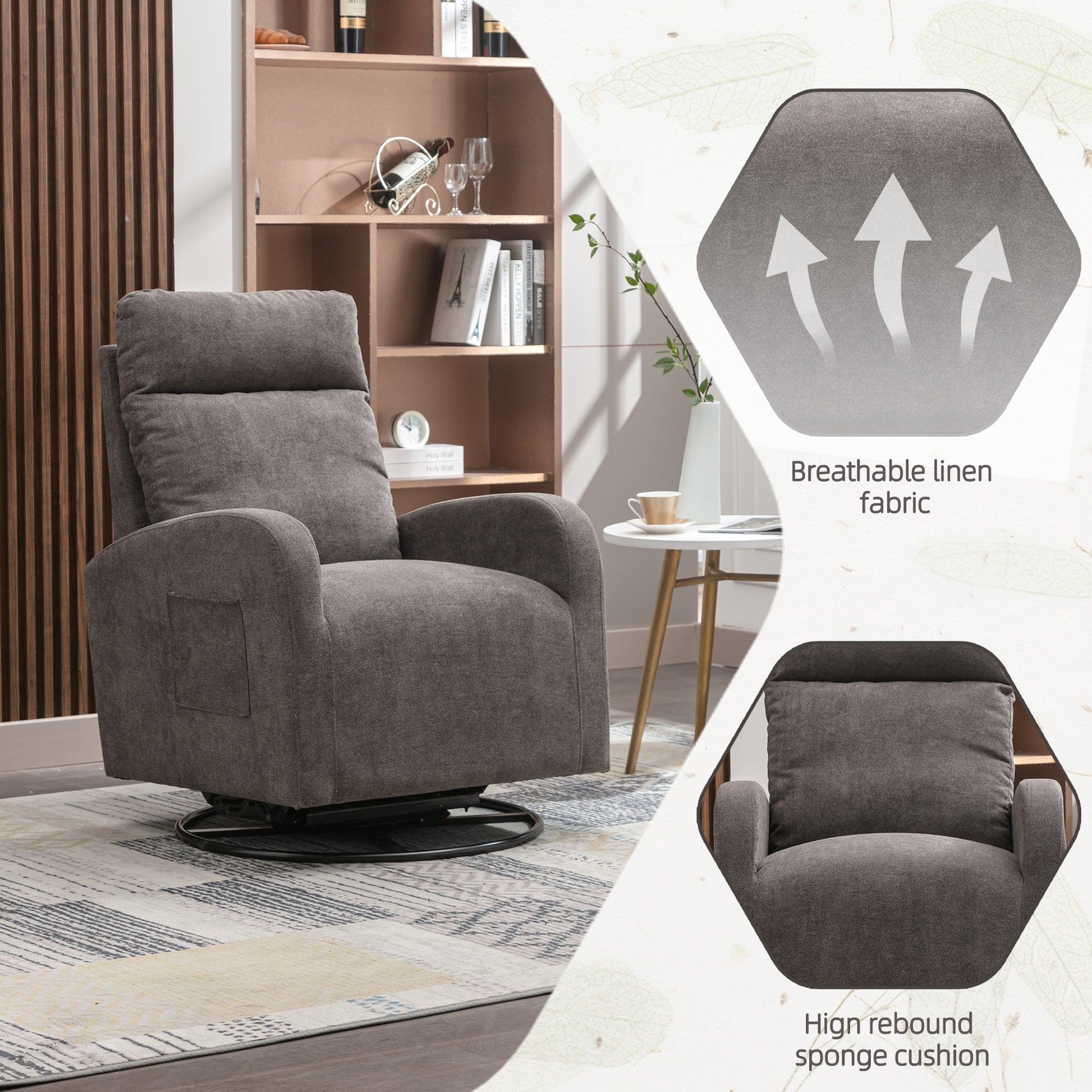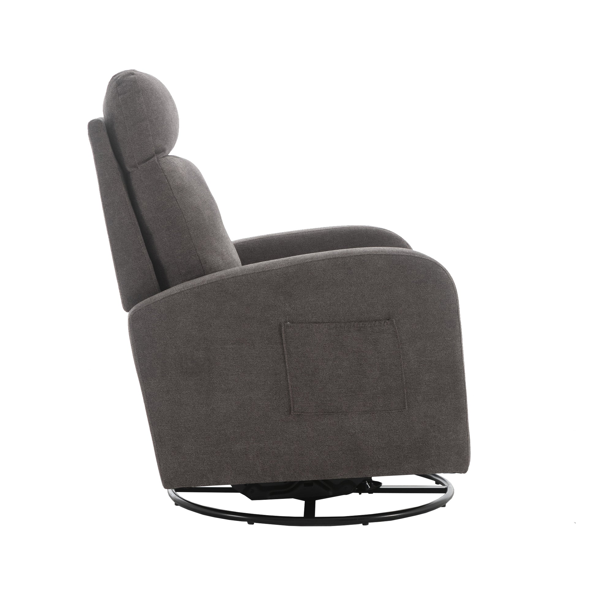 Jiada Upholstered Swivel Glider.Rocking Chair For Nursery In Dark Grey.Modern Style One Left Bag Dark Gray Primary Living Space Foam Linen