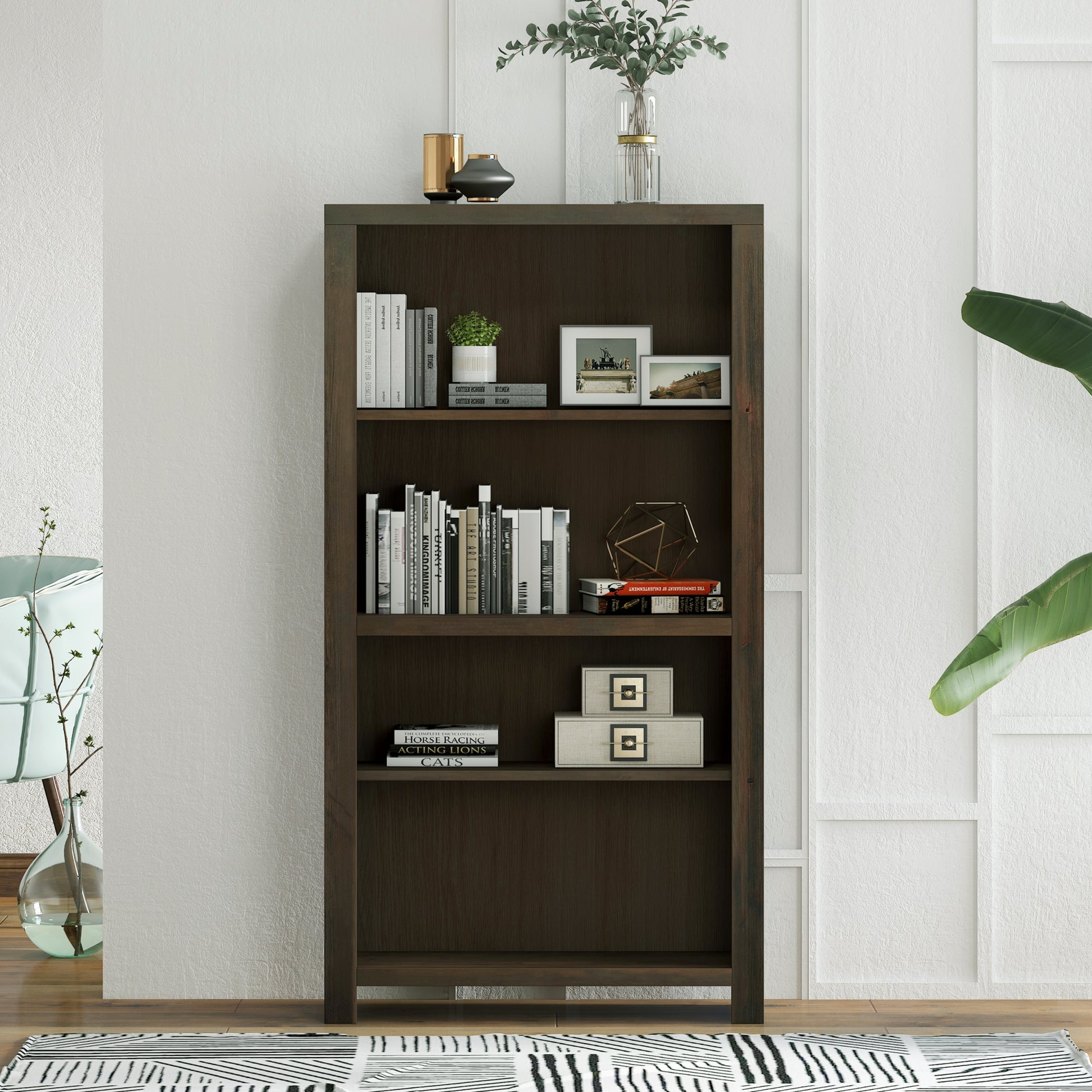 Joshua Creek 60 Inch High 4 Shelf Bookcase, No Assembly Required, Barnwood Finish 3 Brown Brown Closed Back Rustic,Transitional Alder Solid Wood