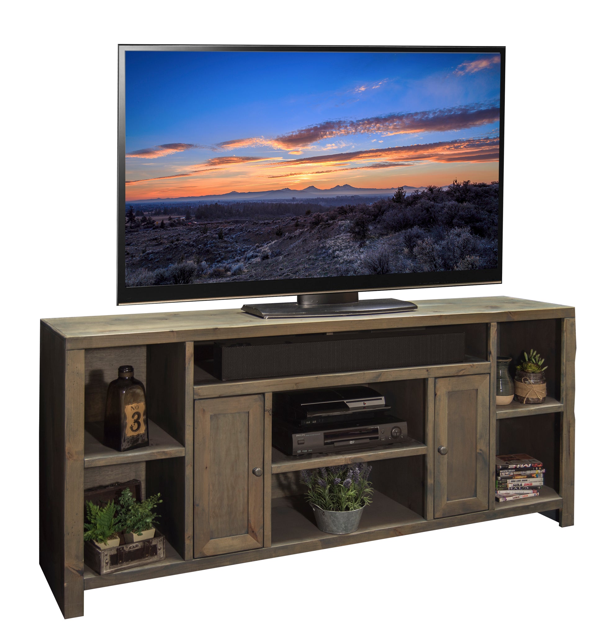 Joshua Creek 74 Inch Tv Stand Console For Tvs Up To 85 Inches, No Assembly Required, Barnwood Finish Brown Brown Primary Living Space 70 79 Inches 80 89 Inches Rustic,Transitional Alder 85 Inches Wood