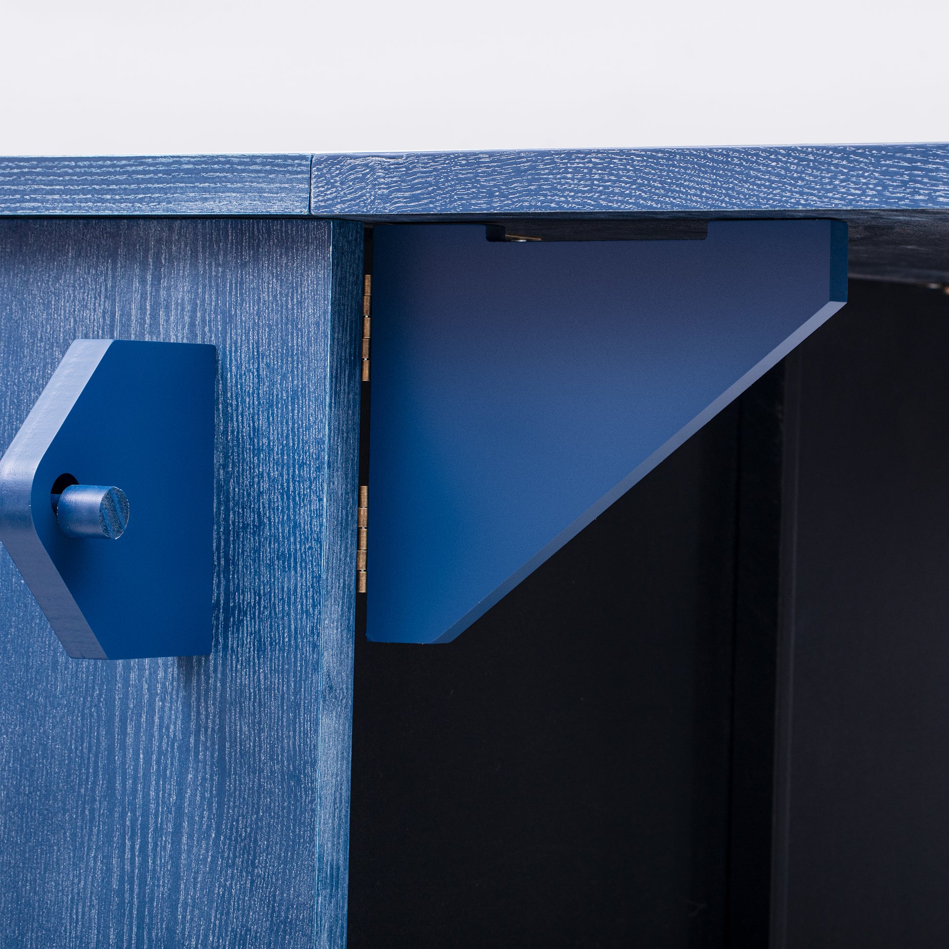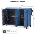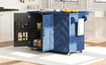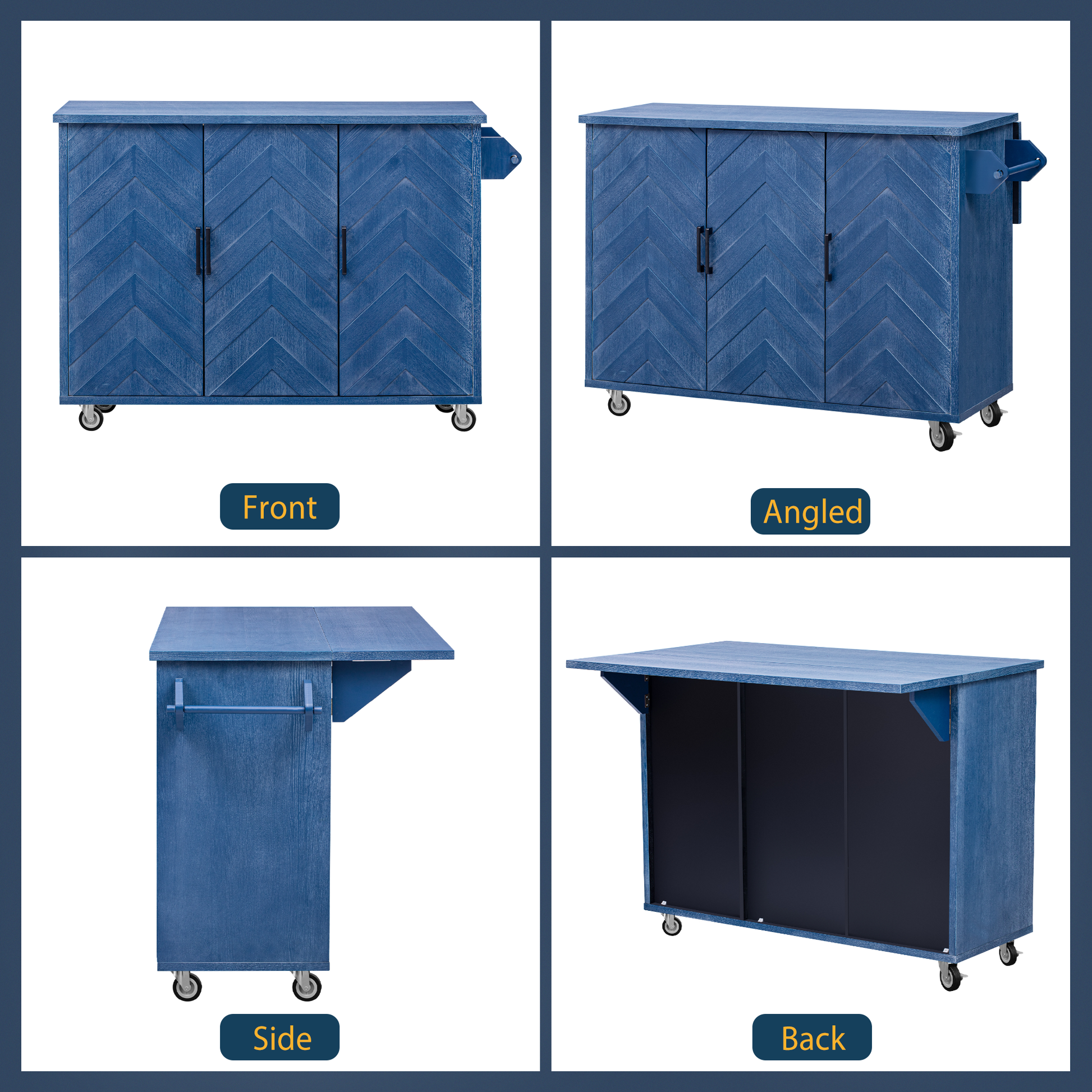 K&K 51.2"W 3D Wave Stripes Ash Veneer Not Cheap Paper Kitchen Island With Drop Leaf, Farmhouse Kitchen Island On Wheels With Internal Storage Rack, Rolling Kitchen Cart Navy Blue Navy Blue Nature