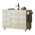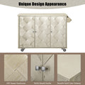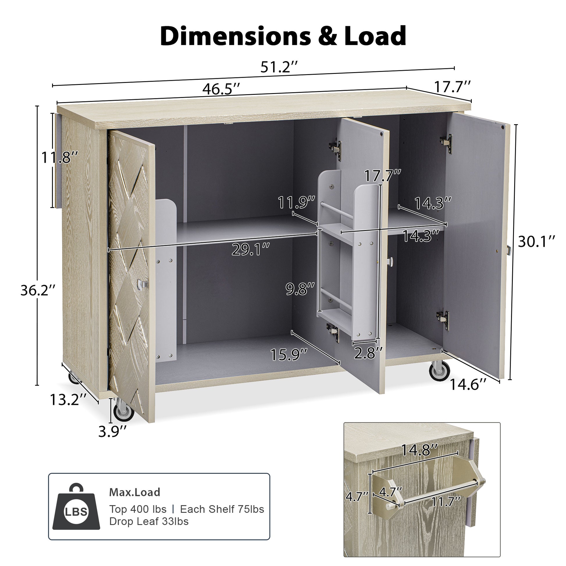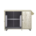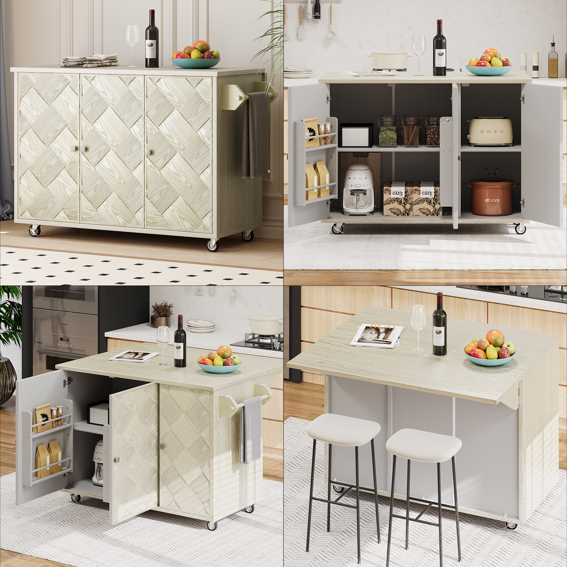 K&K 51.2"W Ash Veneer Not Cheap Paper Solid Wood Handwoven Kitchen Island With Drop Leaf, Coastal Kitchen Island On Wheels With Internal Storage Rack, Rolling Kitchen Cart, Champagne Champagne
