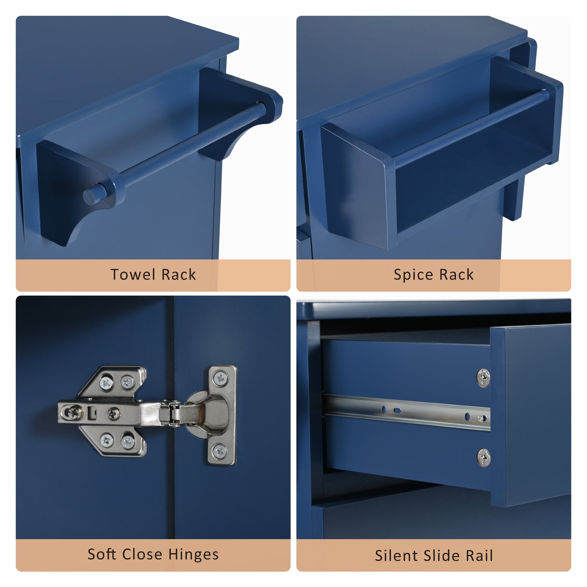 K&K 53.2'' Kitchen Island With Drop Leaf, Kitchen Storage Cart With Spice Rack, Towel Rack And 2 Drawers, Rolling Kitchen Island On Wheels With Adjustable Shelves For Kitchen, Dining Room, Navy Blue Navy Blue Brown Kitchen