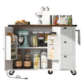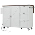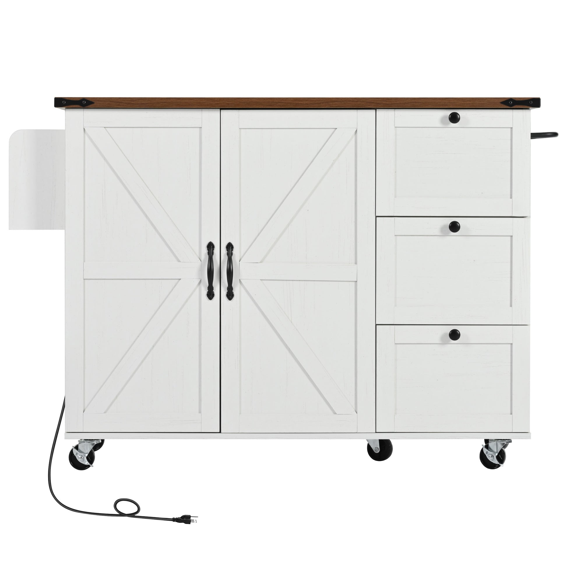 K&K 54.5" Farmhouse Kitchen Island With Power Outlet, Kitchen Storage Island With Internal Storage Rack, Drop Leaf, Spice Rack, Rolling Kitchen Cart On Wheels, For Home, Kitchen And Dining