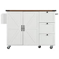 | Summary | This 54.5'' kitchen island brings farmhouse flair to your cooking space or eat-in kitchen. Crafted from a blend of P2 Grade particleboard Mdf and solid wood , it features a white base a light brown countertop,metal corner decor and X-shaped paneling for a classic, inviting look. With a drop leaf, foldable design, and locking wheels, this island offers versatility and mobility. It includes three deep drawers and two barn door with 2-tier shelf racks, providing storage for your kitchen essentials. We that this island's 400 lbs weight capacity ensures it's ready for all your culinary adventures. |