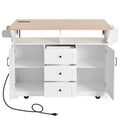 K&K 55.7'' Large Kitchen Island With 2 Drop Leaf, Rolling Kitchen Cart On 5 Wheels With Power Outlet, Folding Storage Dining Table With Spice & Towel Rack3 Drawers, For Kitchen, Dining Room,White White White Kitchen Classic,Farmhouse,Luxury,Modern