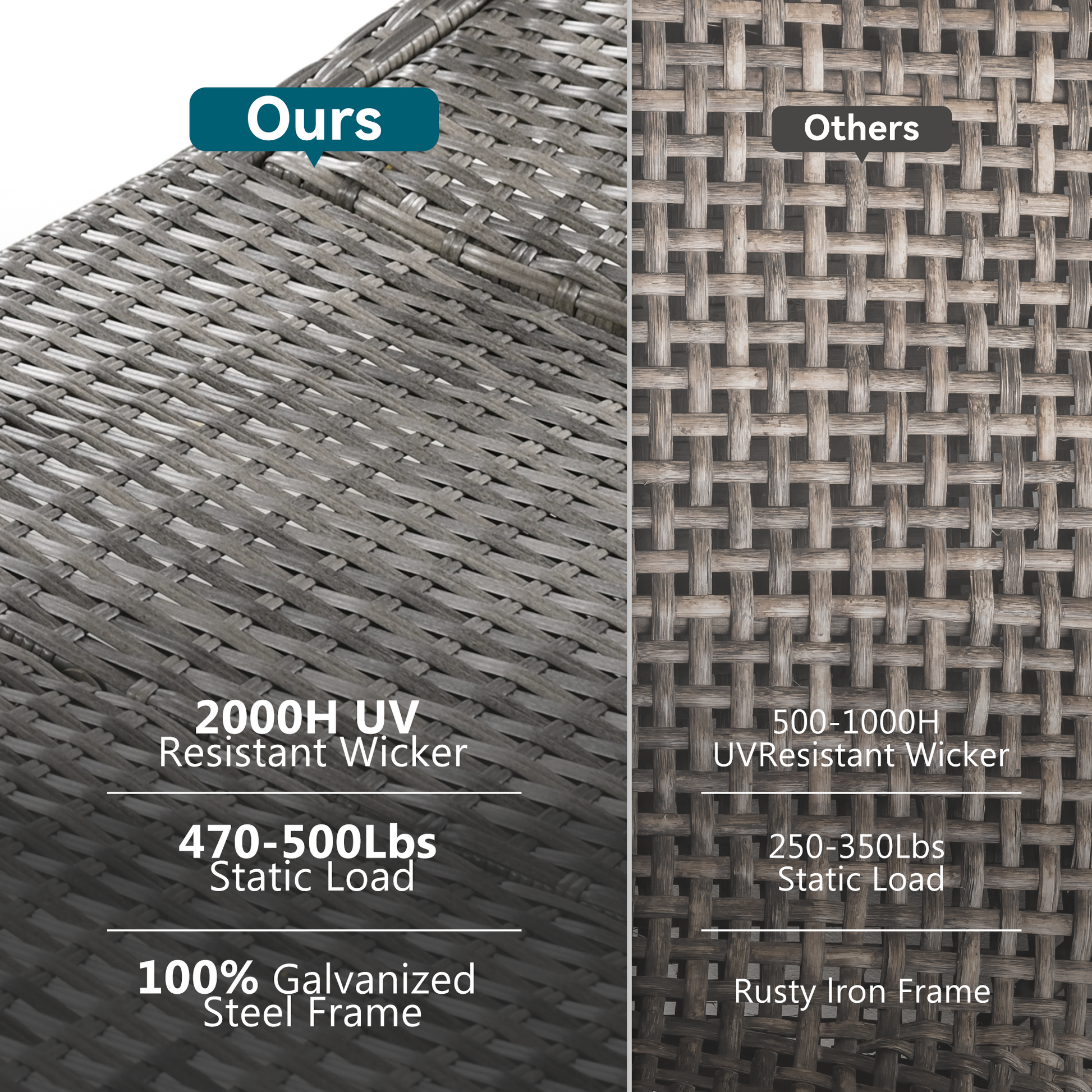 | Highlights | [2000 Hours Uv Tested Wicker][Galvanized Steel Frame][Pull-out Side Table][5-Level Adjustable Backrest][470 Lbs Large Carrying Capacity][Non-slip Leg Pad] |