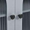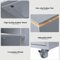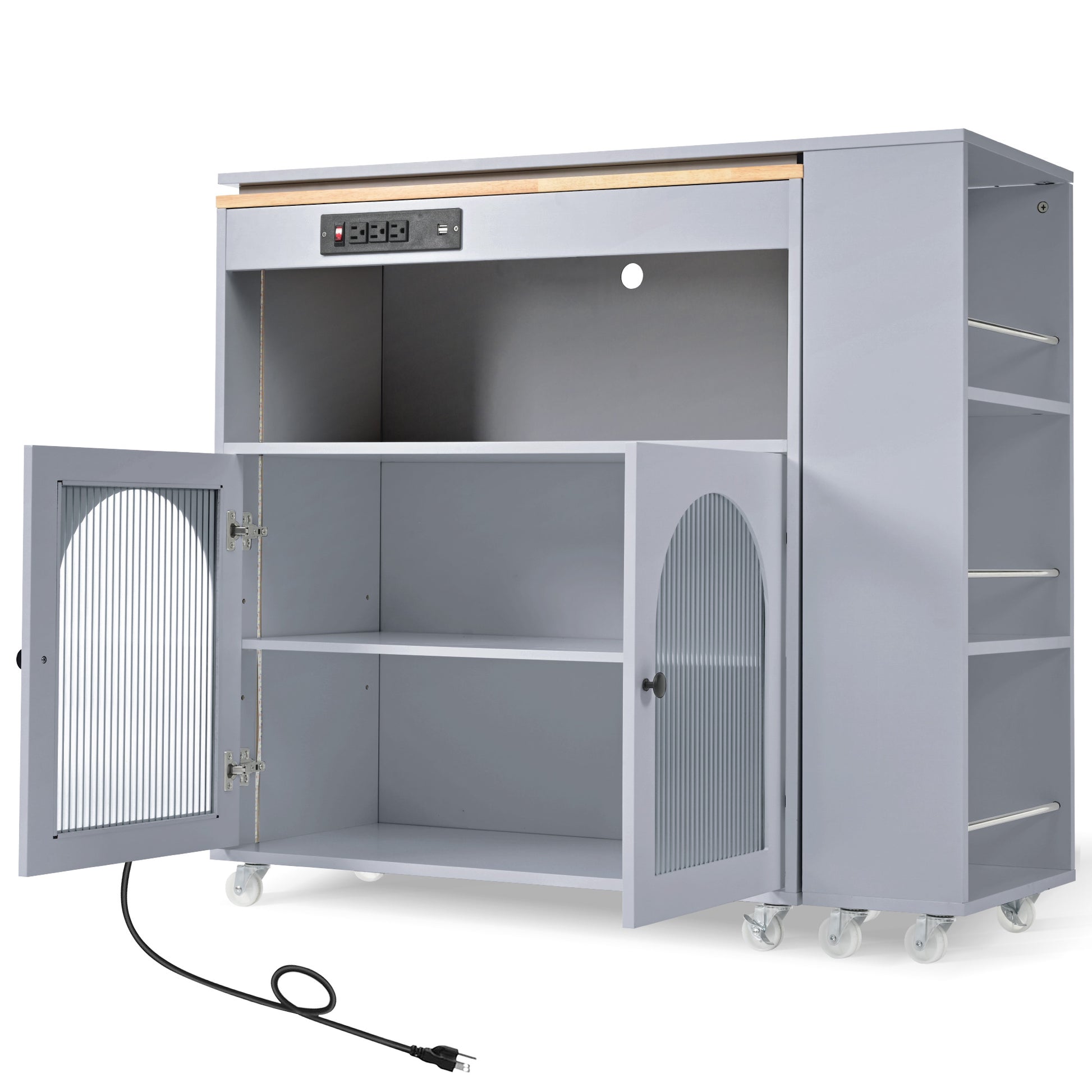 K&K Rolling Kitchen Island With Extended Table, Kitchen Island On Wheels With Led Lights,Power Outlets And 2 Fluted Glass Doors, Kitchen Island With A Storage Compartment And Side 3 Open Shelves, Grey Grey Blue Kitchen Classic,European,Modern Rectangular