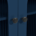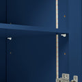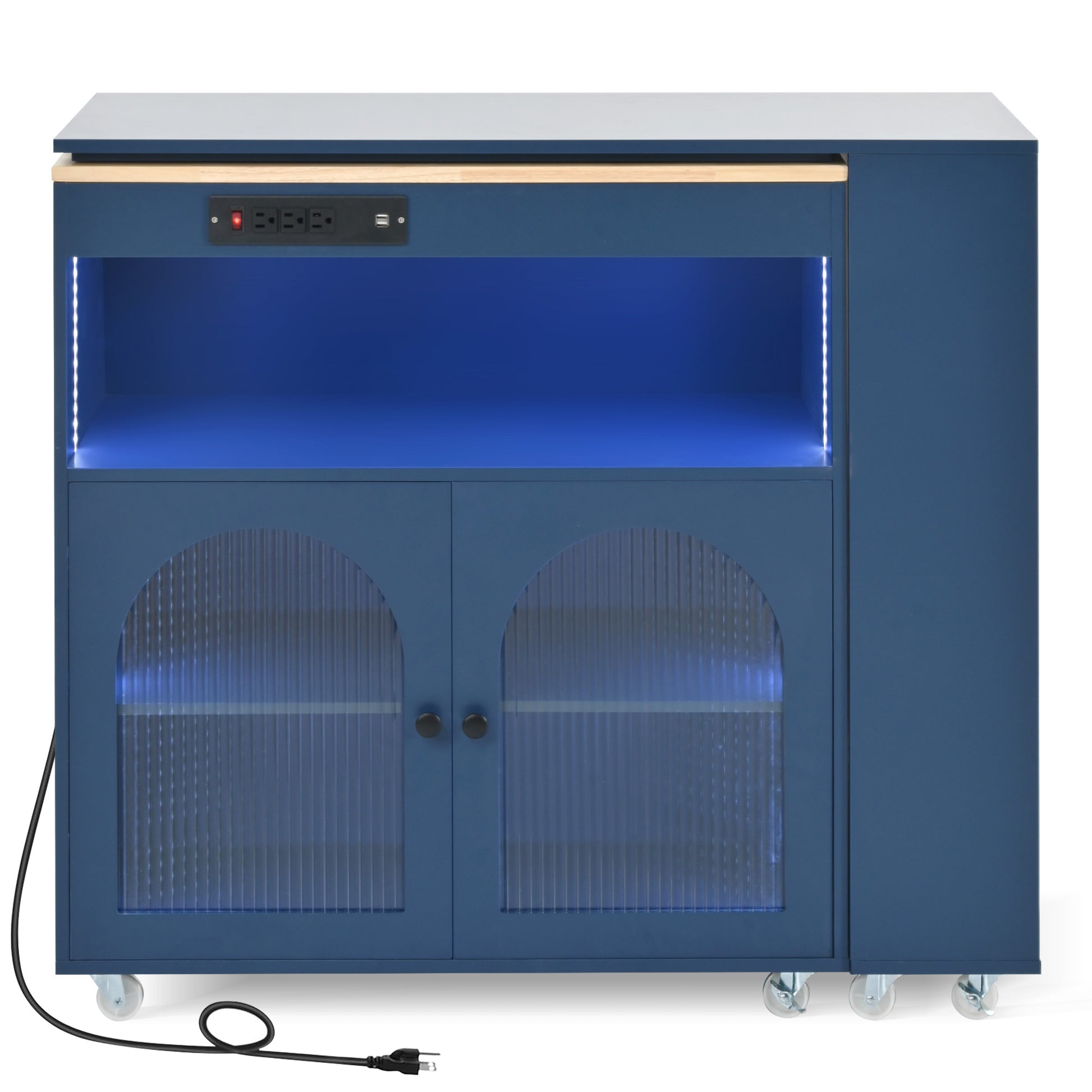 K&K Rolling Kitchen Island With Extended Table, Kitchen Island On Wheels With Led Lights,Power Outlets And 2 Fluted Glass Doors, Kitchen Island With A Storage Compartment And Side 3 Open Shelves, Navy Navy Blue Kitchen Classic,European,Modern Rectangular