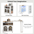 K&K Rolling Kitchen Island With Extended Table, Kitchen Island On Wheels With Led Lights,Power Outlets And 2 Fluted Glass Doors, Kitchen Island With A Storage Compartment And Side 3 Open