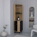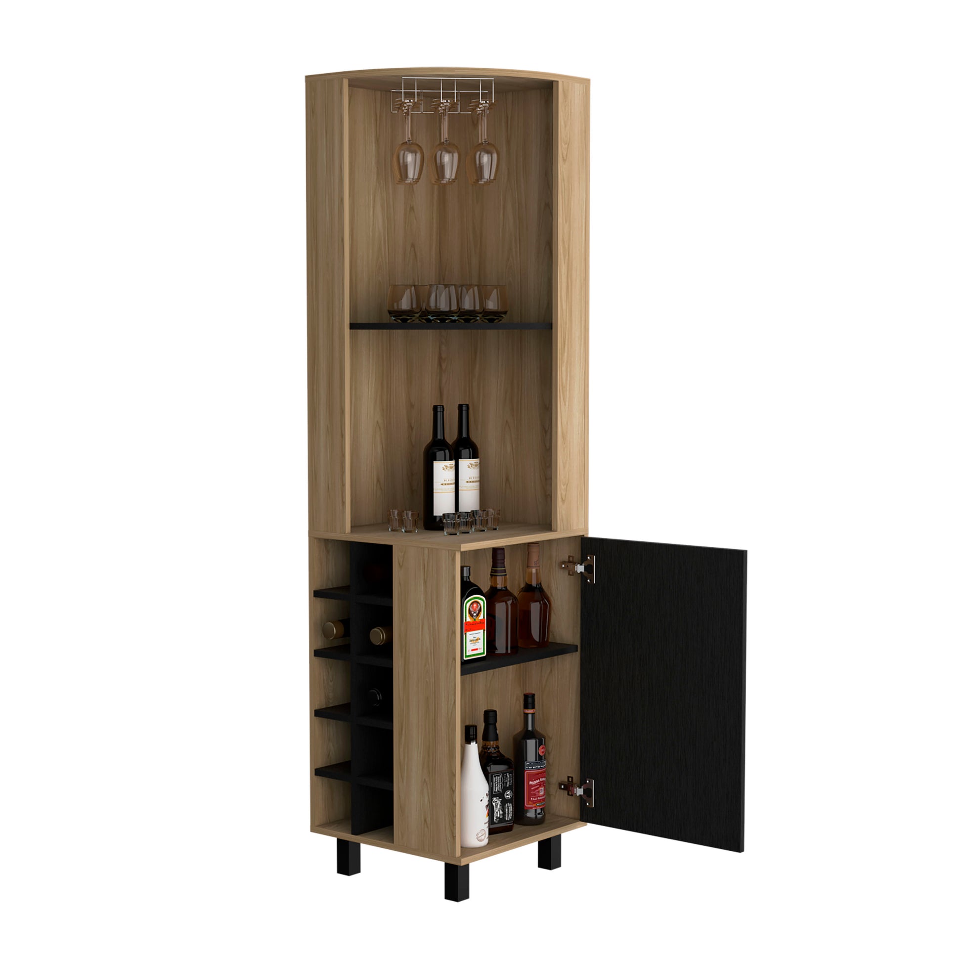 Kaia 70" Tall Corner Bar Cabinet With Four Shelves, Ten Wine Bottle Cubbies And Stemware In Natural Oak Black Light Oak Kitchen Modern Particle Board