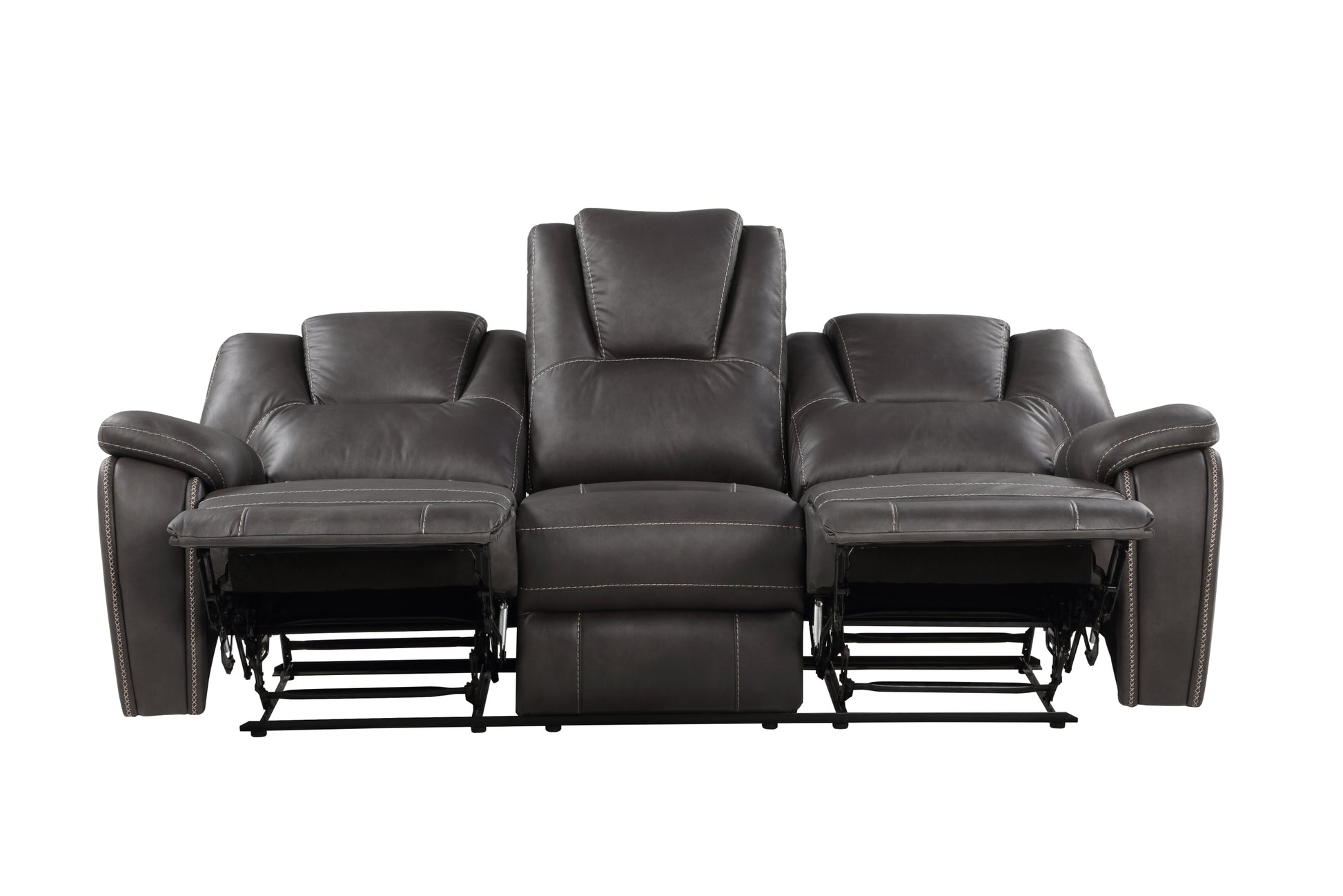 Katrine Pu Manual Sofa Charcoal Black Faux Leather 3 Seat