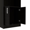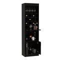 Kava Bar Cabinet, Concealable Serving Tray, Sixteen Built In Wine Rack, One Shelf, Double Door Black Black Particle Board