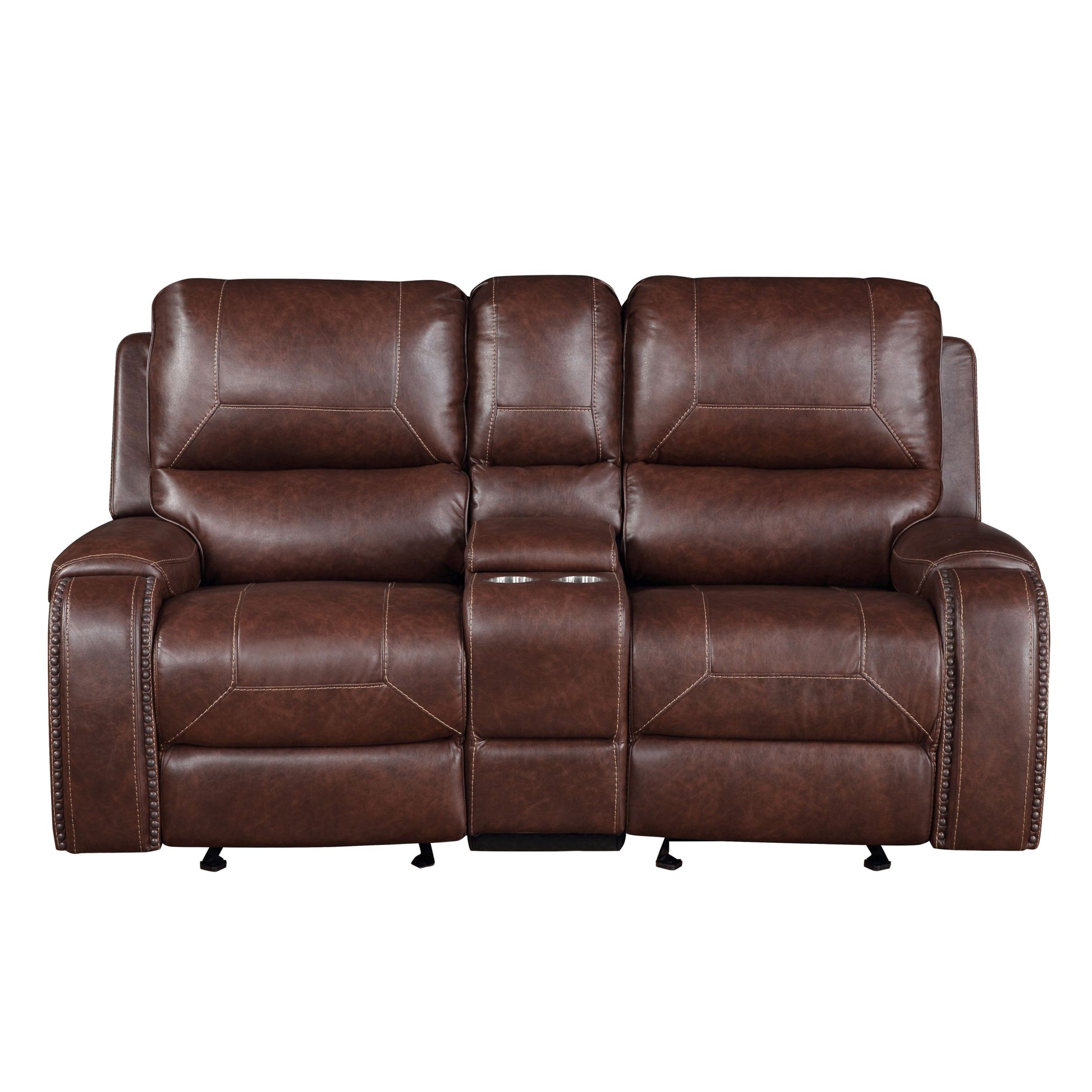 Keily Manual Reclining Glider Loveseat Dark Brown Dark Brown Faux Leather 2 Seat