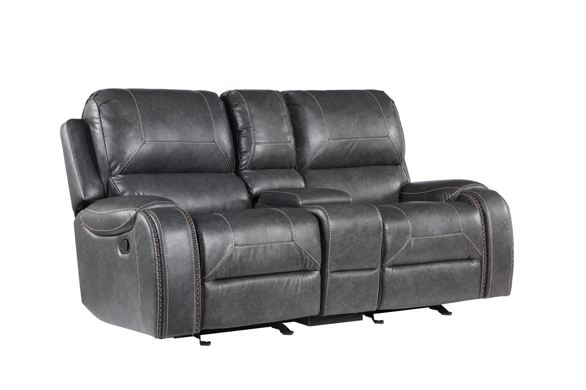 Keily Manual Reclining Glider Loveseat Gray Dark Gray Faux Leather 2 Seat