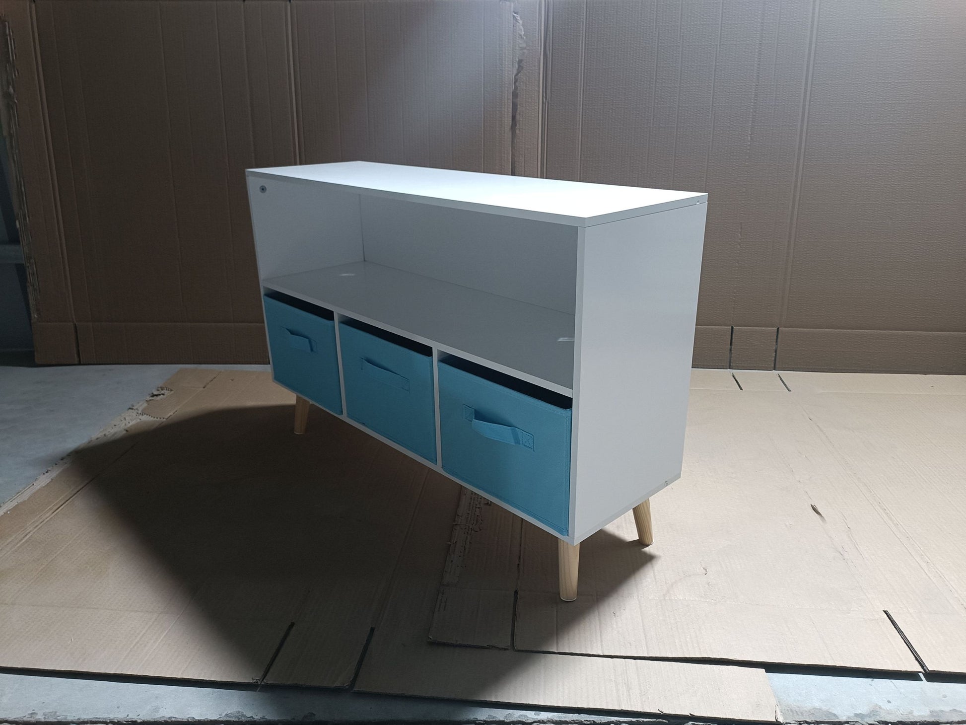Kids Bookcase With Collapsible Fabric Drawers, Children'S Book Display, Toy Storage Cabinet Organizer, White Blue White Blue Mdf