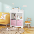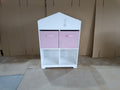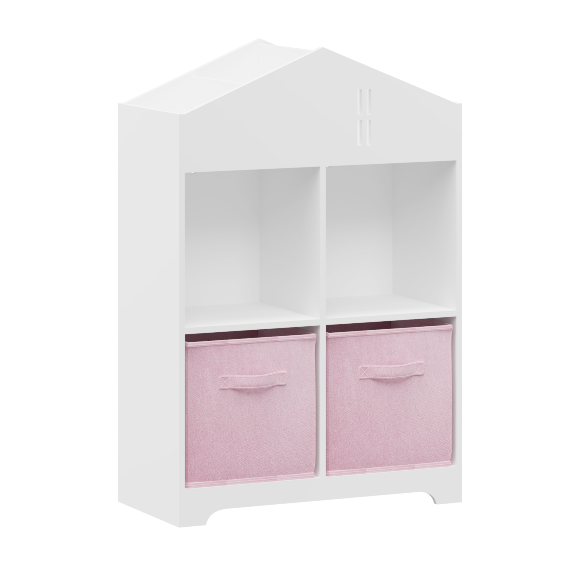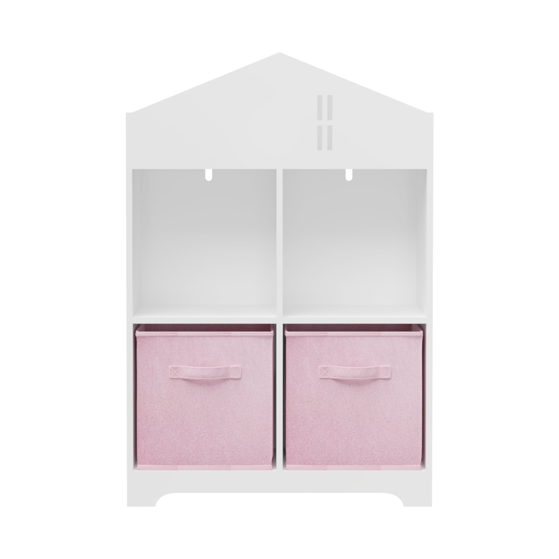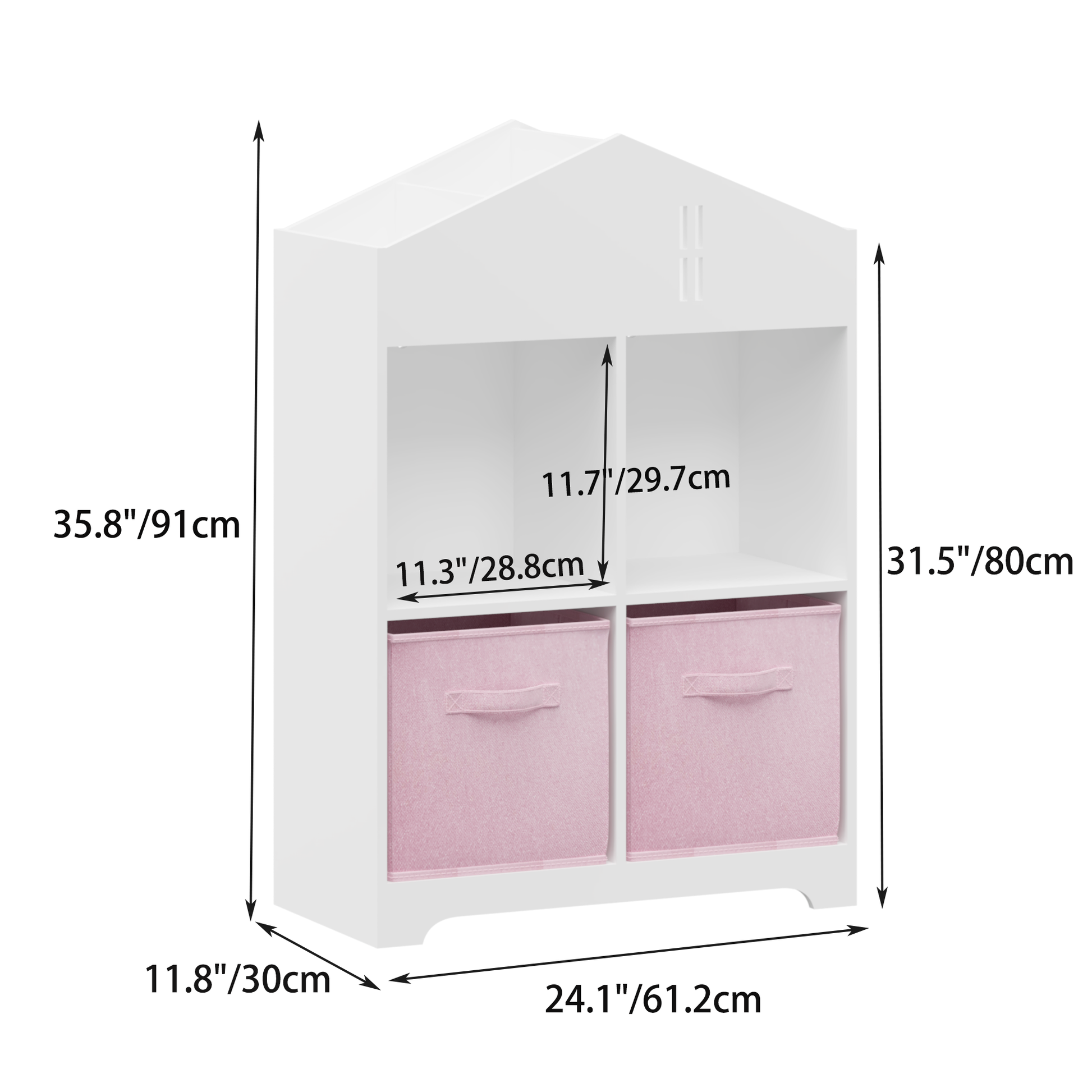 Kids Dollhouse Bookcase With Storage, 2 Tier Storage Display Organizer, Toddler Bookshelf With 2 Collapsible Fabric Drawers For Bedroom Or Playroom White Pink White Pink Mdf