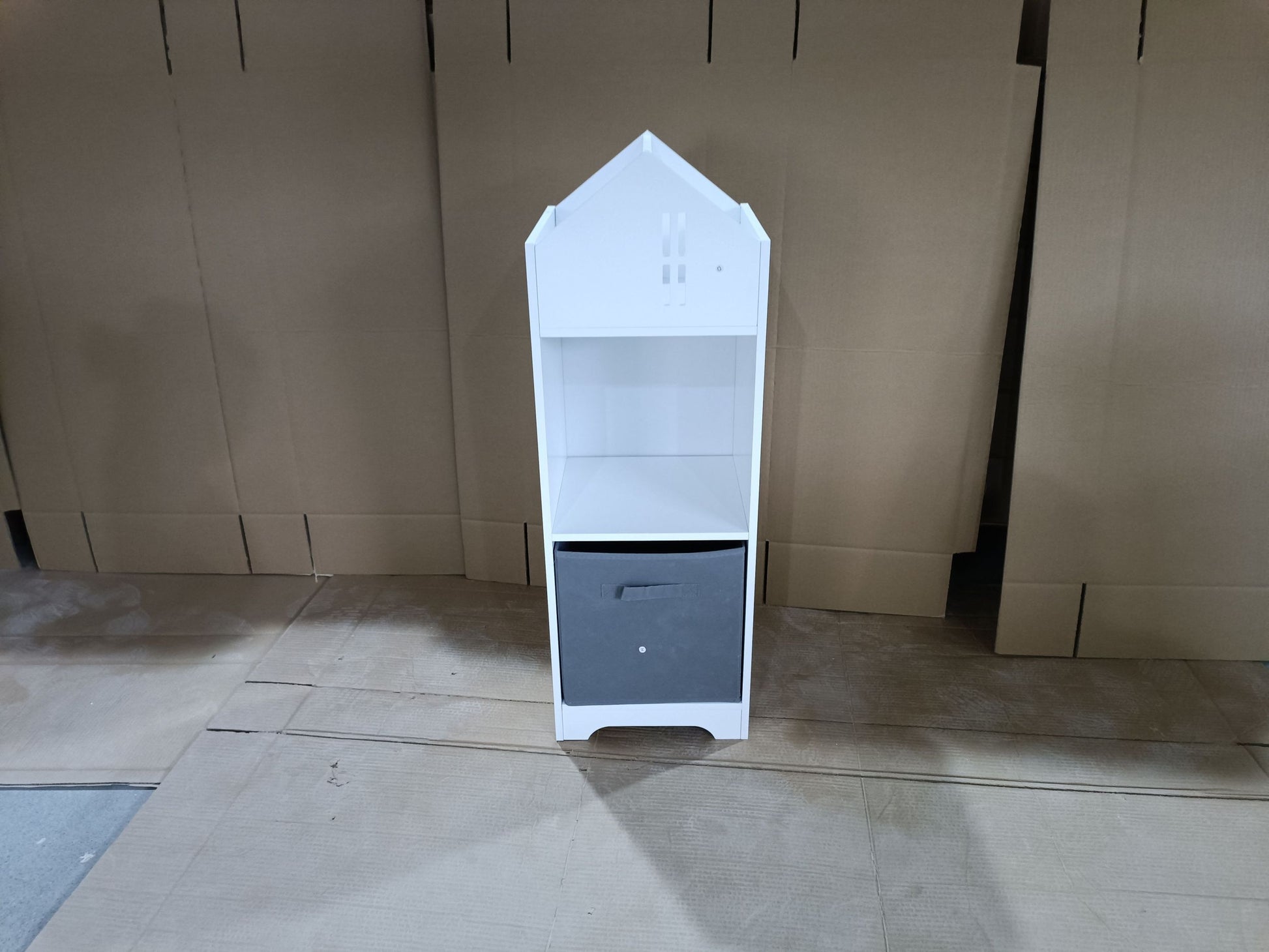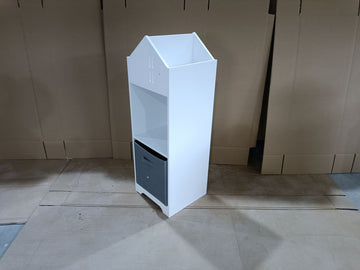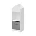 Kids Dollhouse Bookcase With Storage, 2 Tier Storage Display Organizer, Toddler Bookshelf With Collapsible Fabric Drawers For Bedroom Or Playroom White Gray White Gray Mdf