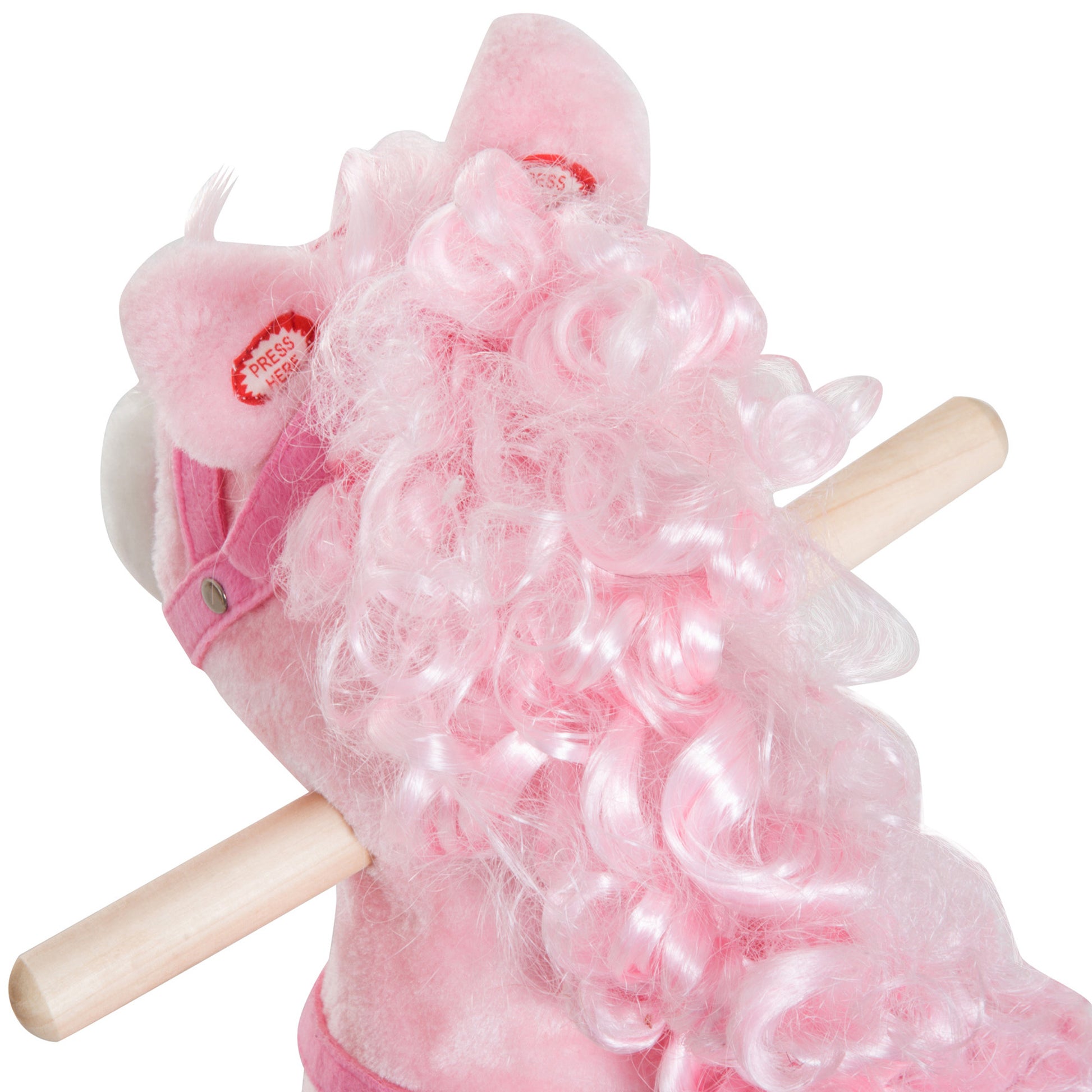 Kids Ride On Rocking Horse Toddler Plush Toy With Realistic Sounds And Swinging Tail For 3 Years Old Children Pink Wood