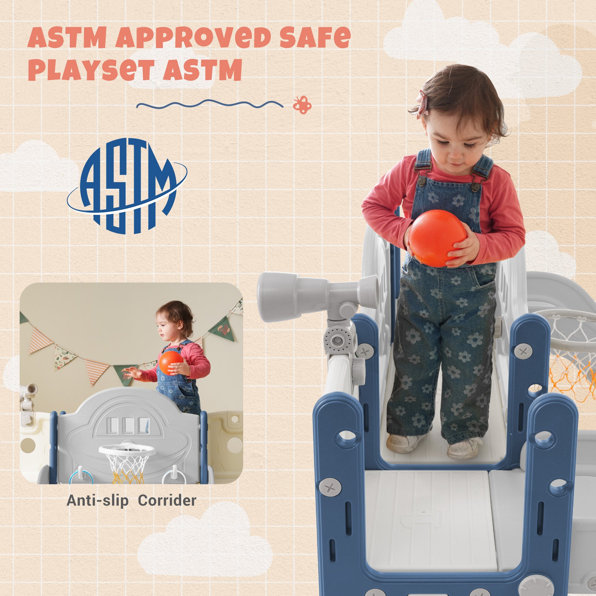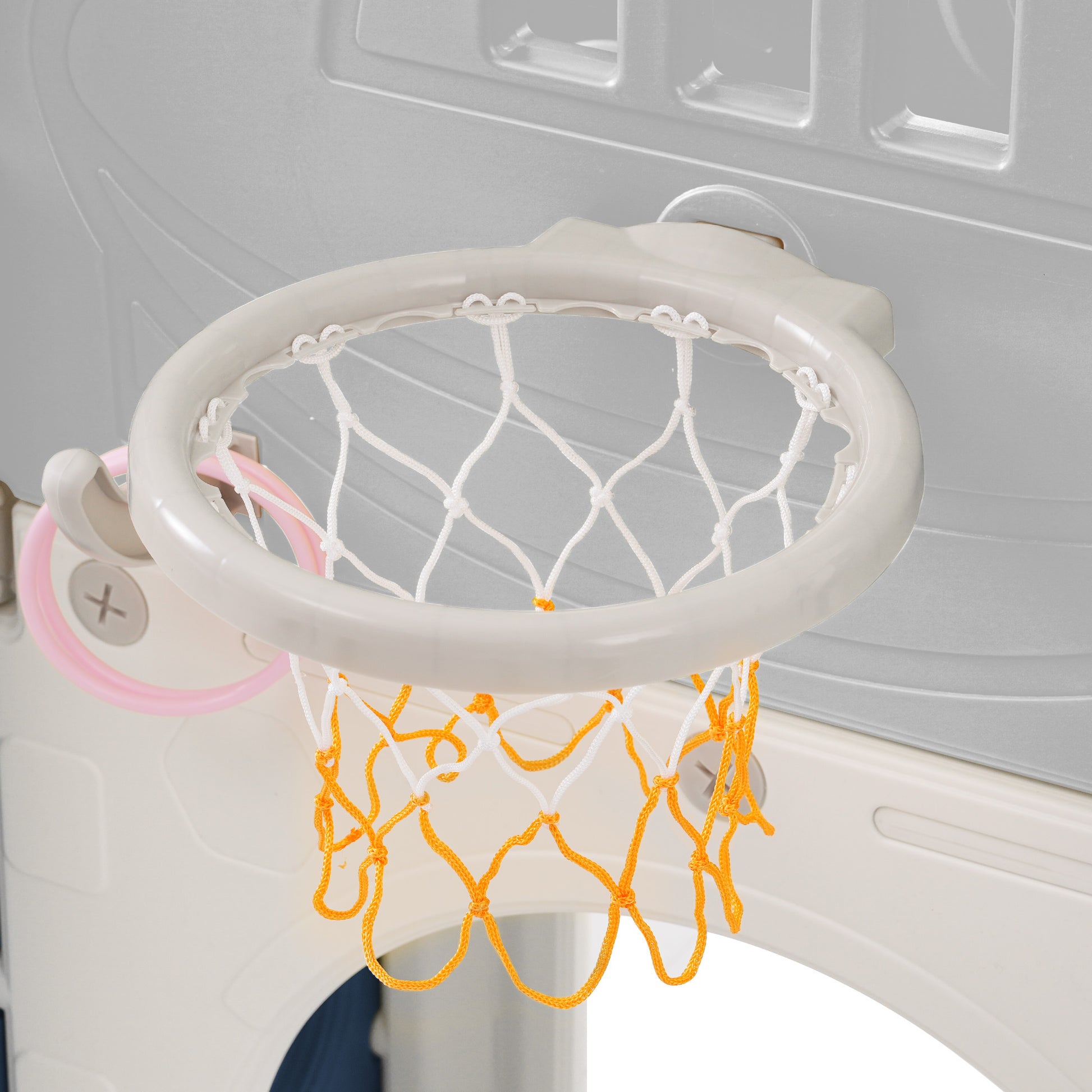 Kids Slide Playset Structure 7 In 1, Freestanding Space Set With Slide, Arch Tunnel, Ring Toss And Basketball Hoop,Double Slides For Toddlers, Kids Climbers Playground Blue Grey Hdpe