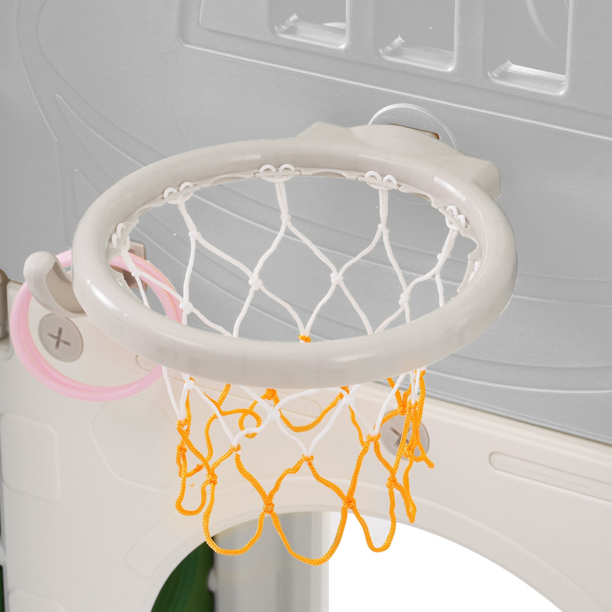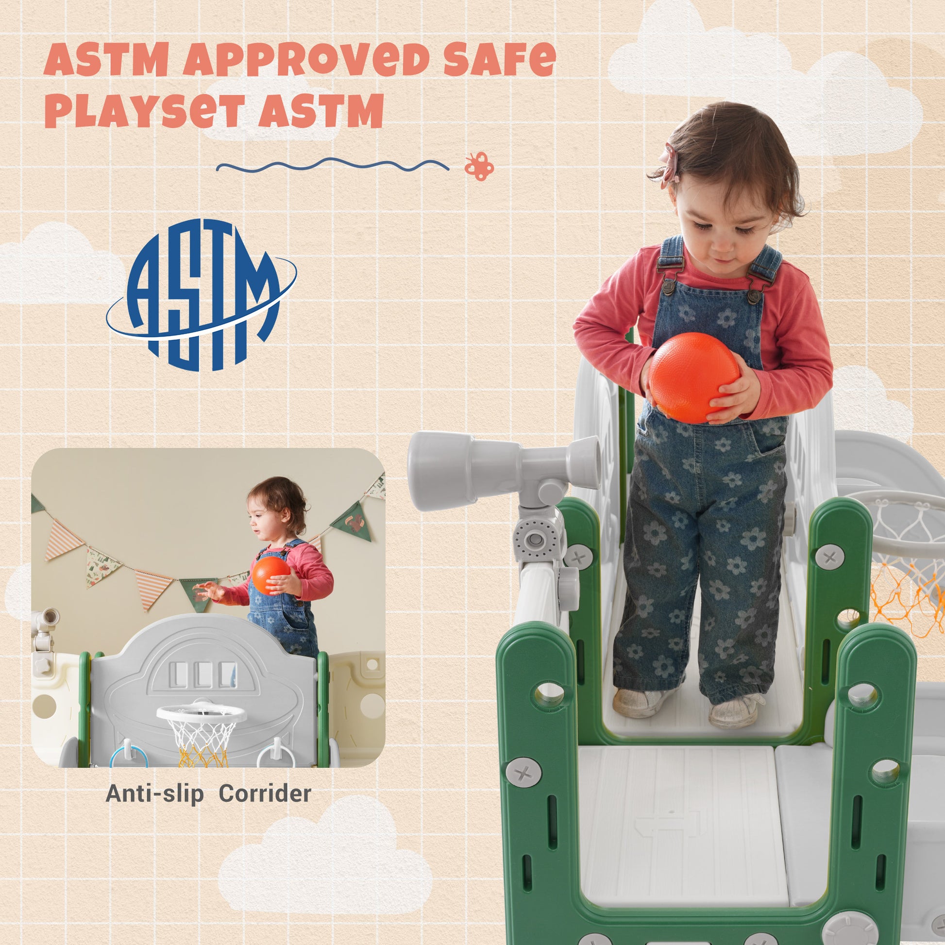 Kids Slide Playset Structure 7 In 1, Freestanding Space Set With Slide, Arch Tunnel, Ring Toss And Basketball Hoop,Double Slides For Toddlers, Kids Climbers Playground Green Hdpe