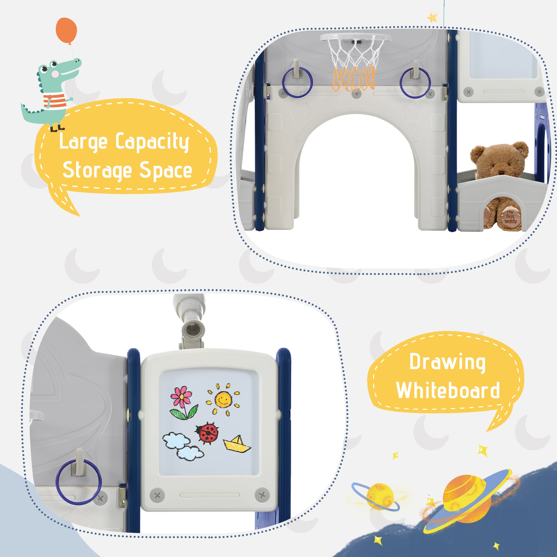 Kids Slide Playset Structure 9 In 1, Freestanding Space Set With Slide, Arch Tunnel, Ring Toss, Drawing Whiteboardl And Basketball Hoop For Toddlers, Kids Climbers Playground Blue Grey Hdpe Indoor & Outdoor Use