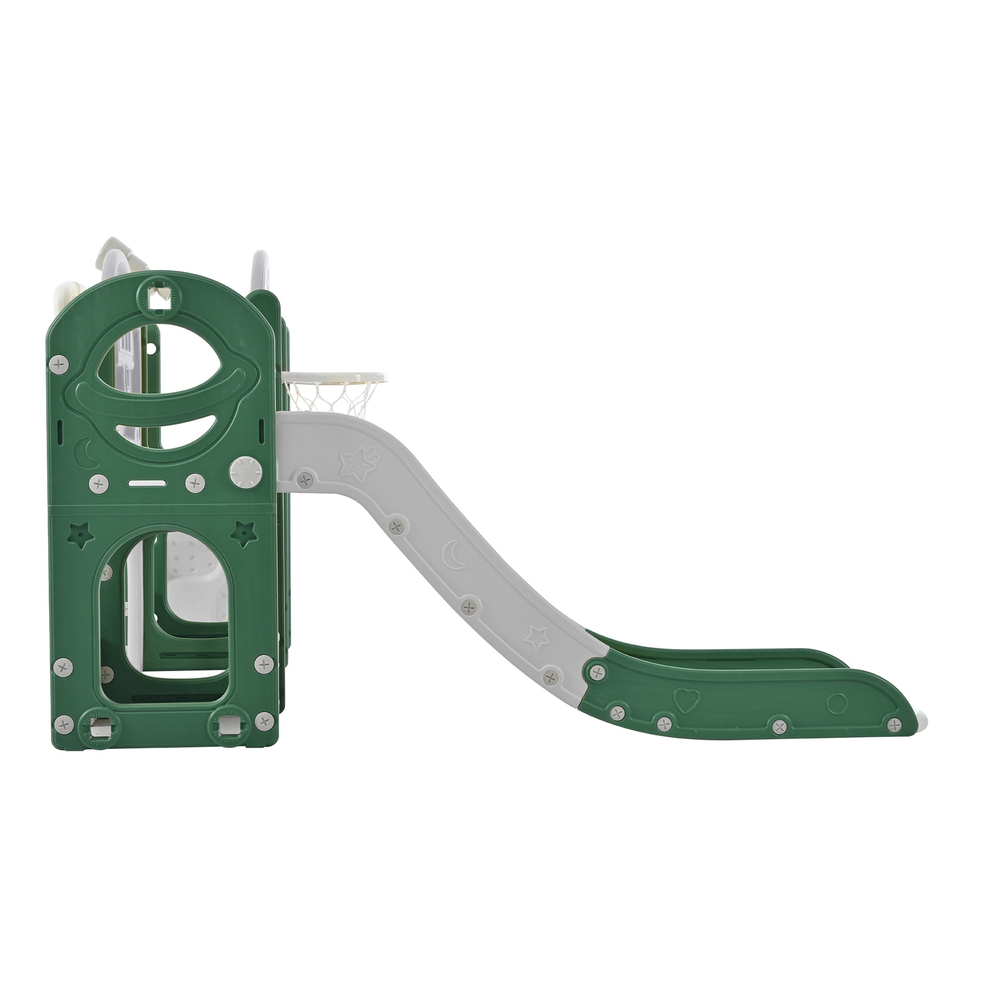 Kids Slide Playset Structure 9 In 1, Freestanding Space Set With Slide, Arch Tunnel, Ring Toss, Drawing Whiteboardl And Basketball Hoop For Toddlers, Kids Climbers Playground Green Hdpe Indoor & Outdoor Use