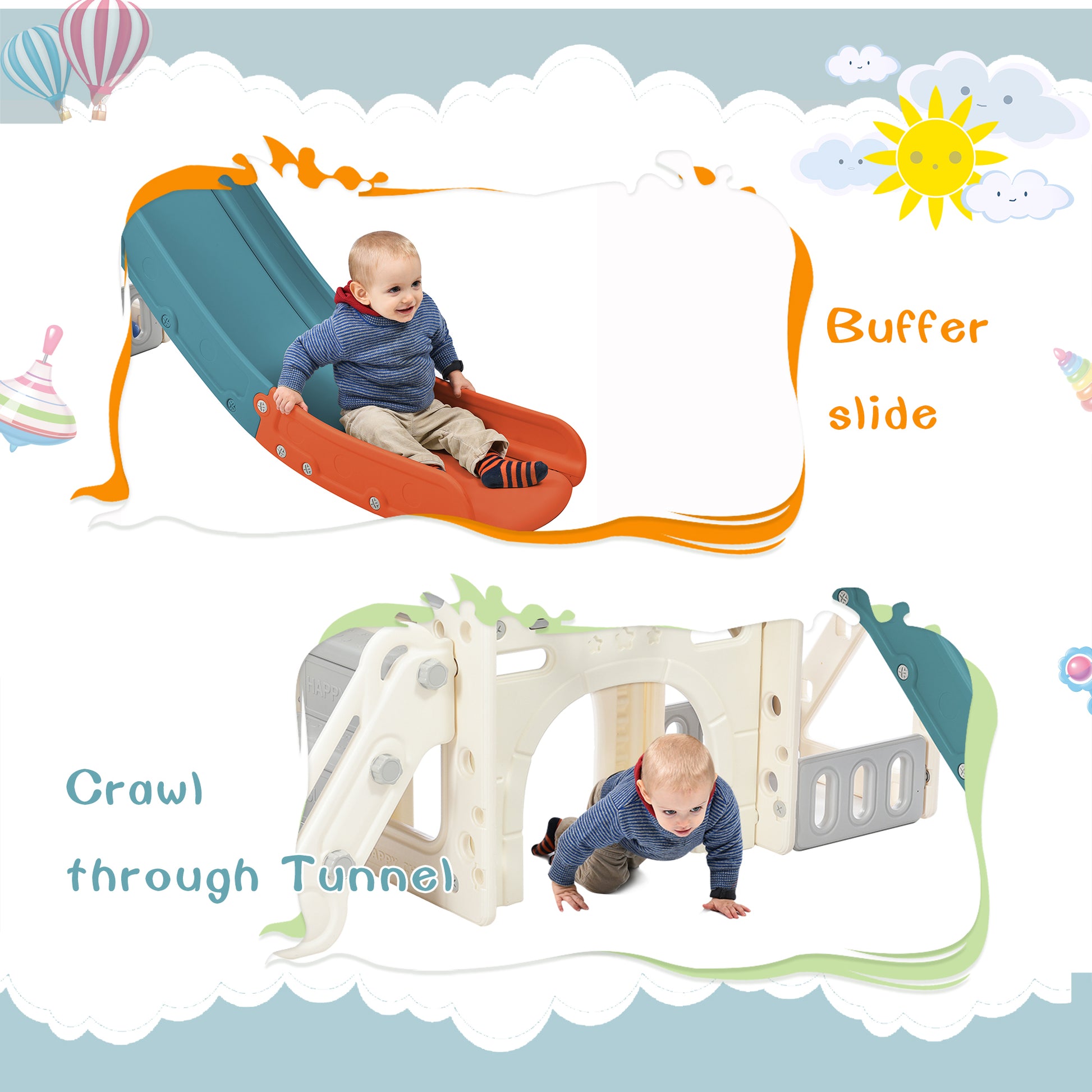 Kids Slide Playset Structure, Freestanding Castle Climbing Crawling Playhouse With Slide, Arch Tunnel, Ring Toss, And Basketball Hoop, Toy Storage Organizer For Toddlers, Kids Climbers Playground Blue Red Hdpe