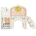 Kids Slide Playset Structure, Freestanding Castle Climbing Crawling Playhouse With Slide, Arch Tunnel, Ring Toss, And Basketball Hoop, Toy Storage Organizer For Toddlers, Kids Climbers Playground Pink White Hdpe
