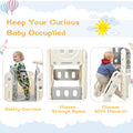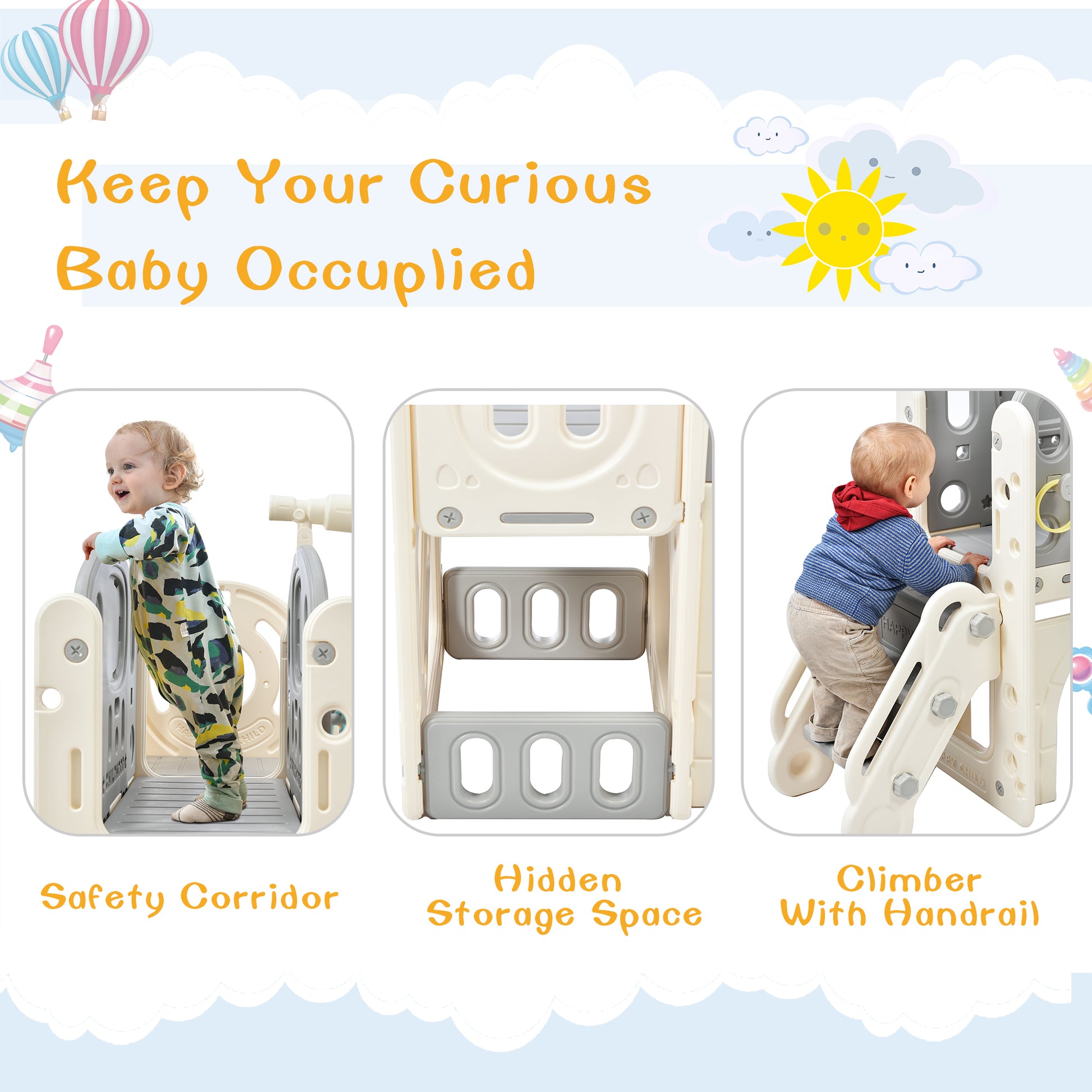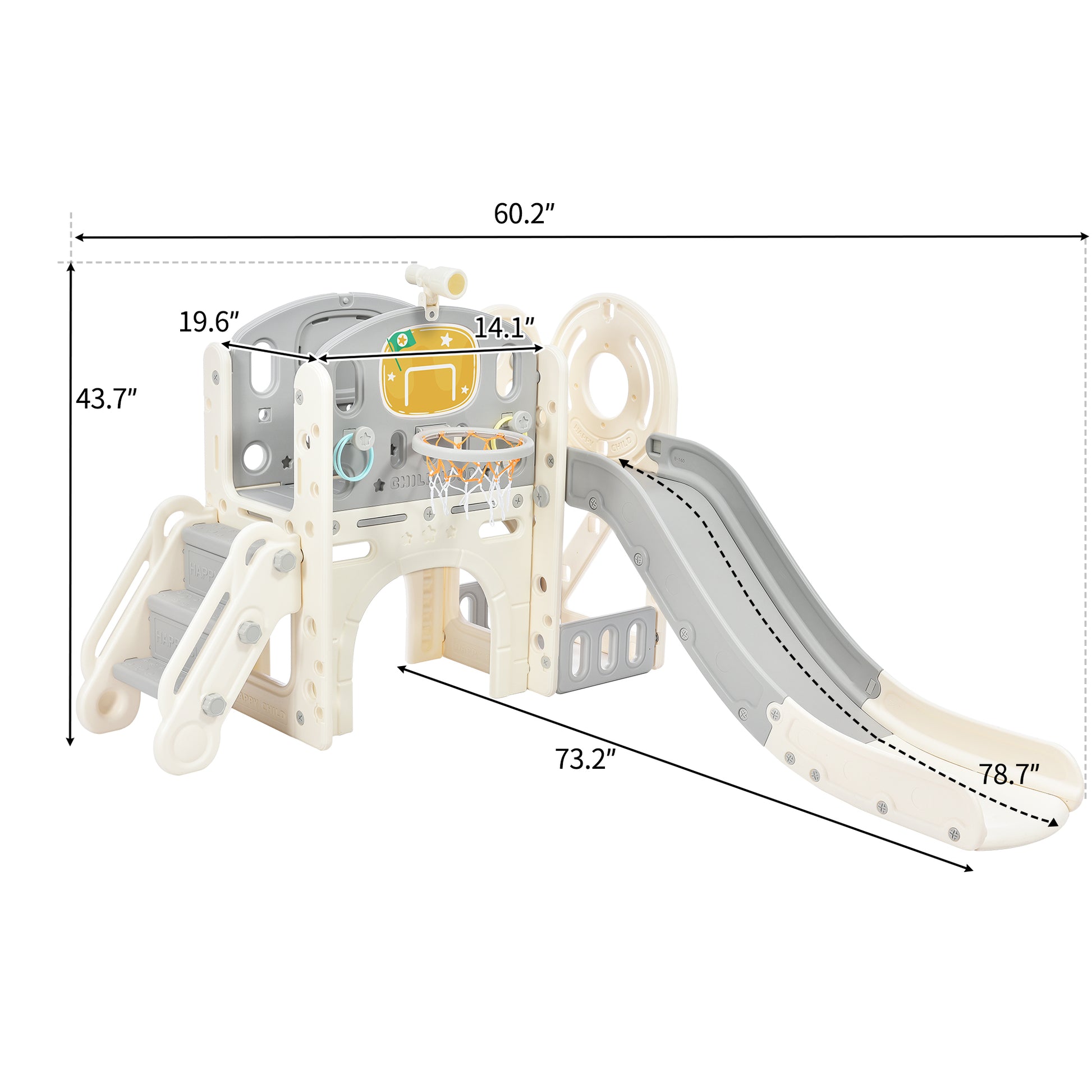Kids Slide Playset Structure, Freestanding Castle Climbing Crawling Playhouse With Slide, Arch Tunnel, Ring Toss, And Basketball Hoop, Toy Storage Organizer For Toddlers, Kids Climbers Playground Grey White Hdpe