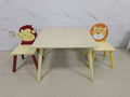 Kids Table And 2 Chairs Set, 3 Pieces Toddler Table And Chair Set, Wooden Activity Play Table Set Lion&Monkey Natural Solid Wood Mdf