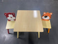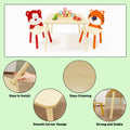 Kids Table And 2 Chairs Set, 3 Pieces Toddler Table And Chair Set, Wooden Activity Play Table Set Bear&Tiger Natural Solid Wood Mdf
