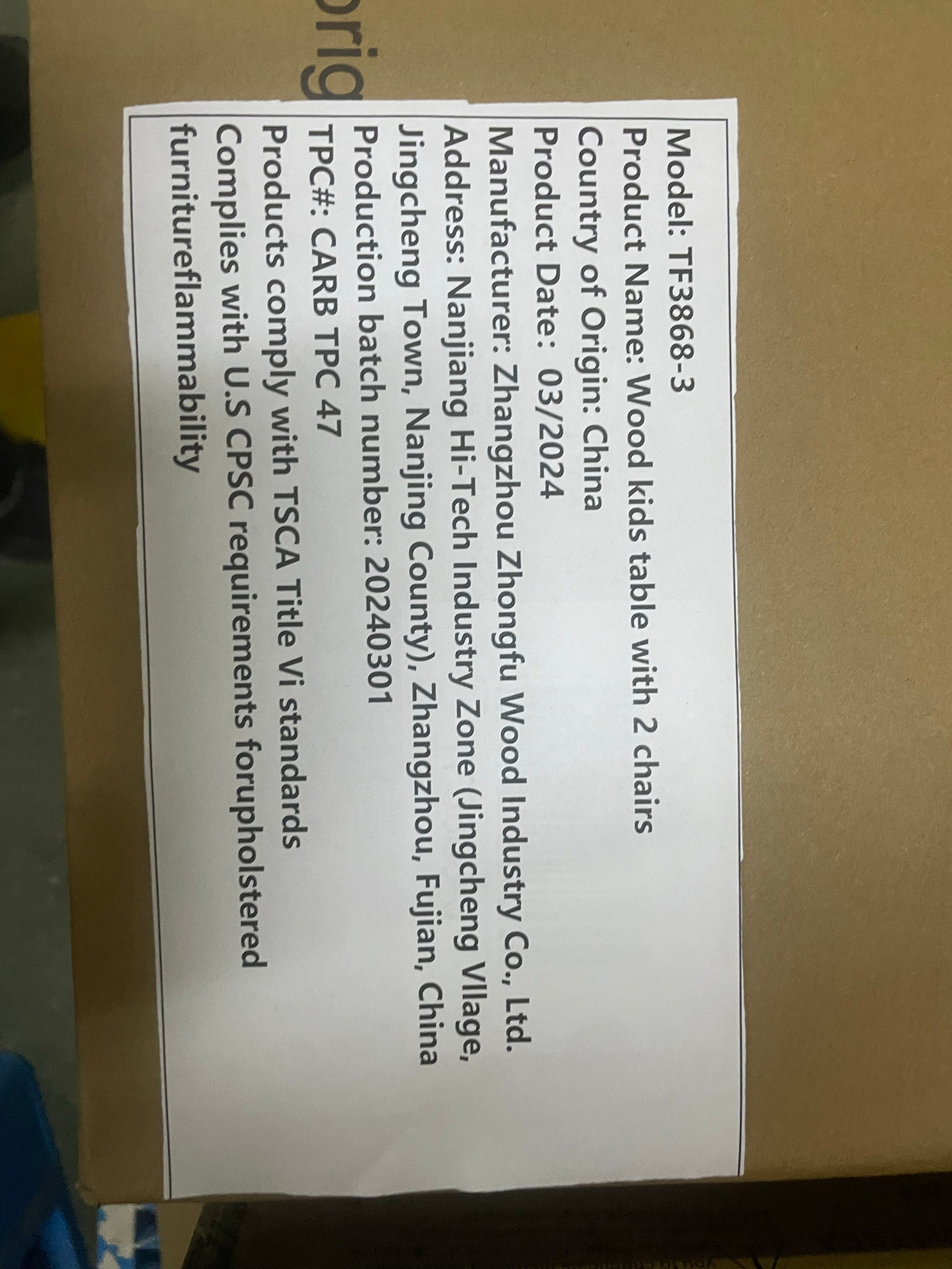 | Package Contents | 1 x Table, 2 x Chairs, 1 x Assembly parts package |