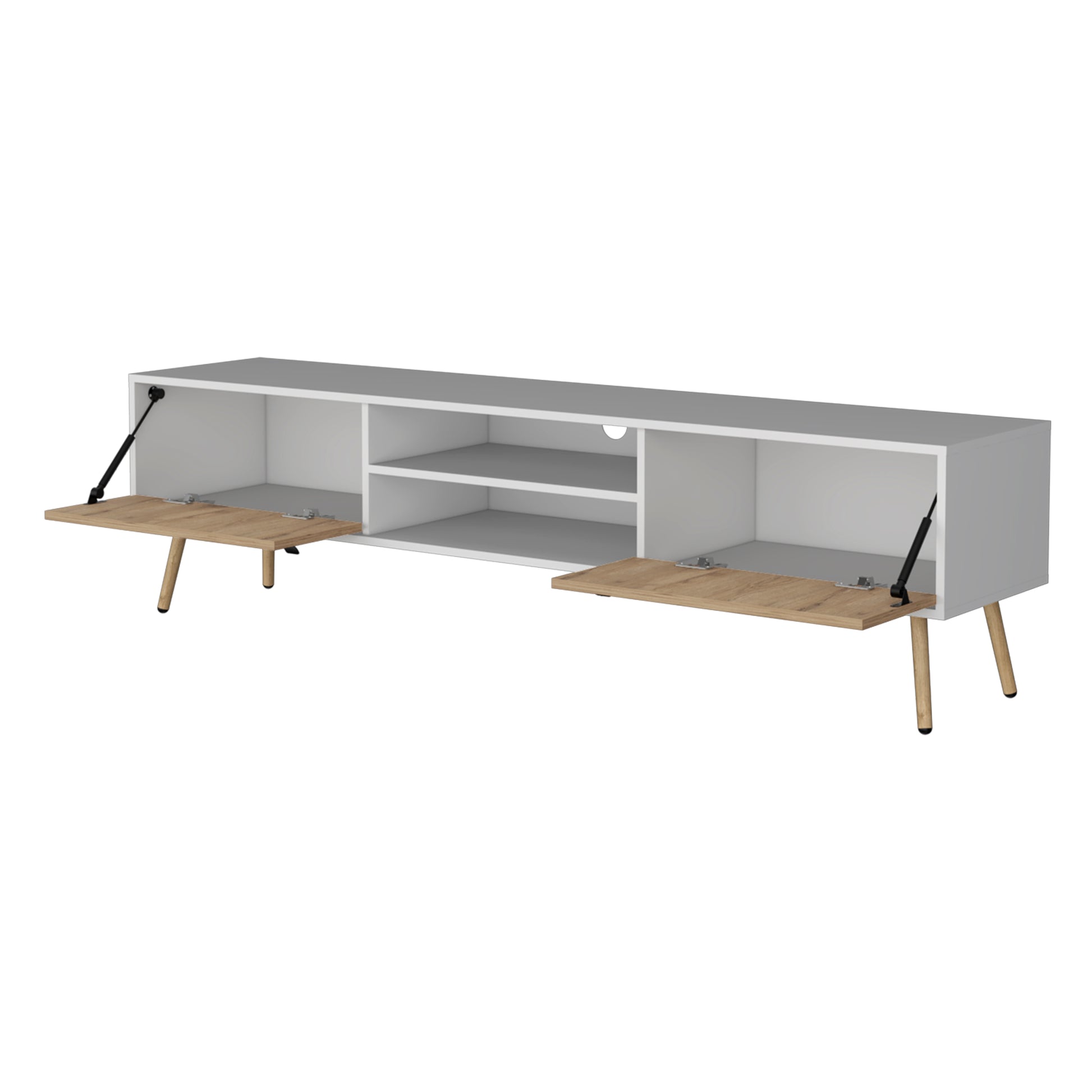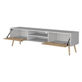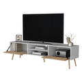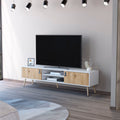 Kimball Tv Rack, Spacious Storage With 2 Hinged Drawers And Open Shelves Multicolor White Primary Living Space 70 Inches 60 69 Inches Modern Pine 70 Inches Particle Board Engineered Wood