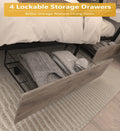 King Bed Frame, Storage Headboard With Charging Station, Solid And Stable, Noise Free, No Box Spring Needed, Easy Assembly Box Spring Not Required King Antique Gray Metal Bedroom Bed Frame Mdf Metal
