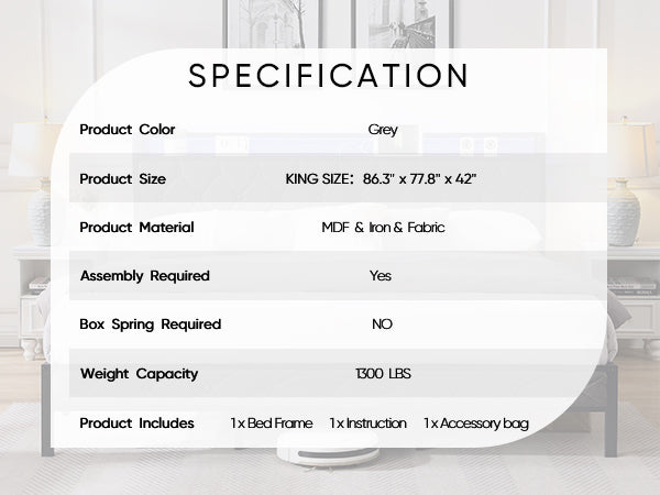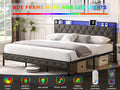 King Bed Frame With Storage Headboard, Charging Station And Led Lights, Upholstered Platform Bed With Heavy Metal Slats, No Box Spring Needed, Noise Free, Easy Assembly, Dark Gray Box Spring Not Required King Gray Metal Bedroom Bed Frame Metal