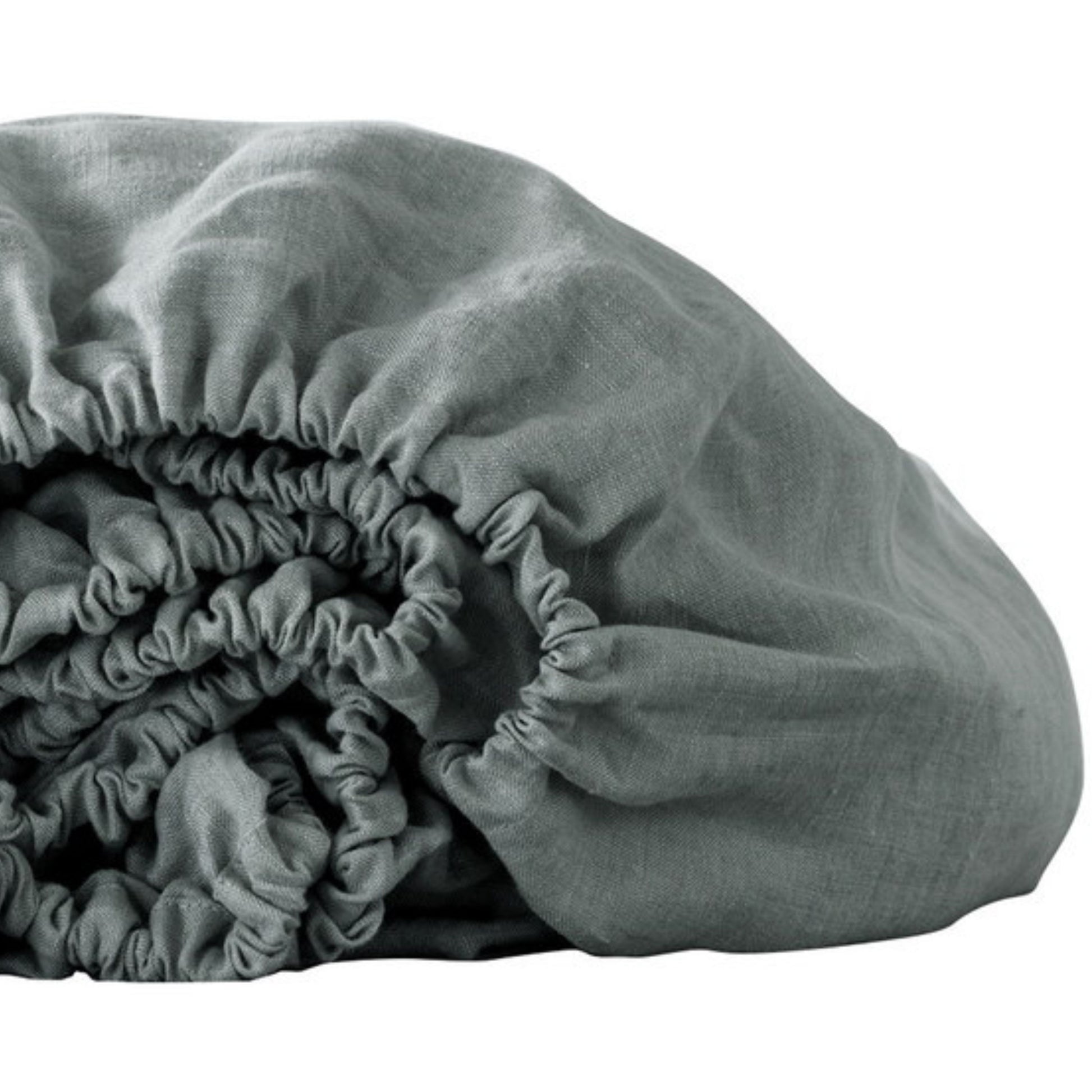 King Fitted Sheet 1 Pc, Bed Sheets King Size, Linen Sheets, Hotel Sheets,& Fade Resistant King Sheets, Sea Glass Grey Linen Linen