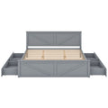 King Size Wooden Platform Bed With Four Storage Drawers And Support Legs, Gray King Gray Pine