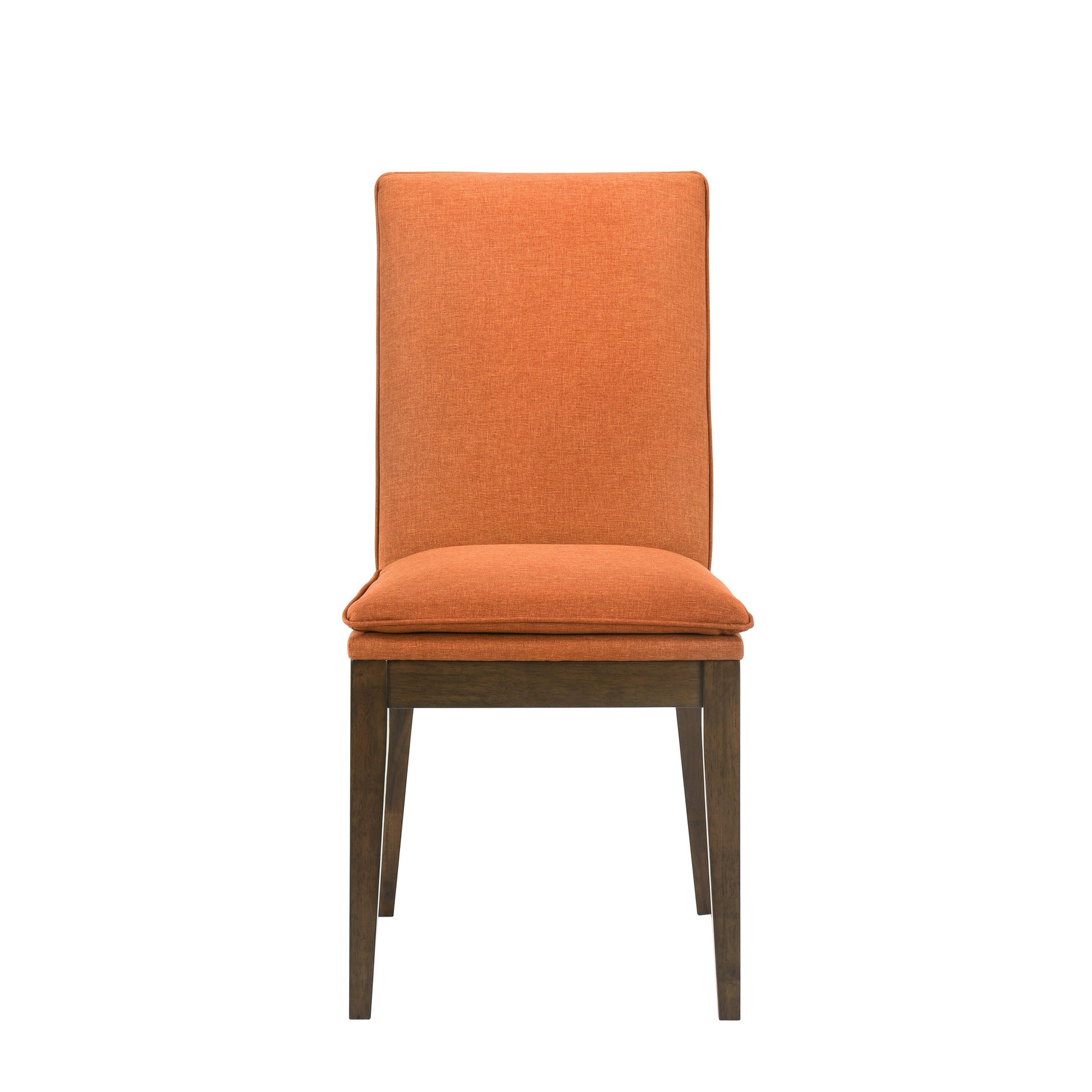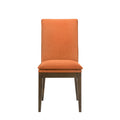 Kiq 26 Inch Set Of 2 Dining Chairs, Walnut Brown Rubberwood Frame, Orange Orange Wood Fabric