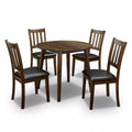 Kitchen 5Pc Dining Set Round Dining Table And 4X Side Chairs Walnut, Dark Brown Transitional Solid Wood Dining Room Furniturepadded Seat Wood Walnut Brown Slat Back Seats 4 Wood Dining Room Solid