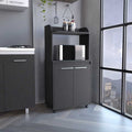 Kitchen Cart Totti, Double Door Cabinet, One Open Shelf, Two Interior Shelves, Black Wengue Finish White Particle Board