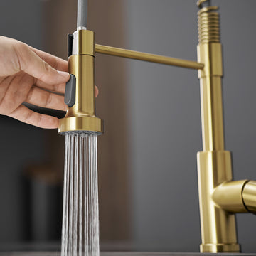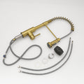 Kitchen Faucet With Pull Down Sprayer Brushed Gold Stainless Steel Single Handle Pull Out Spring Sink Faucets Brushed Gold Kitchen Classic,Contemporary,Modern Ceramic Stainless Steel