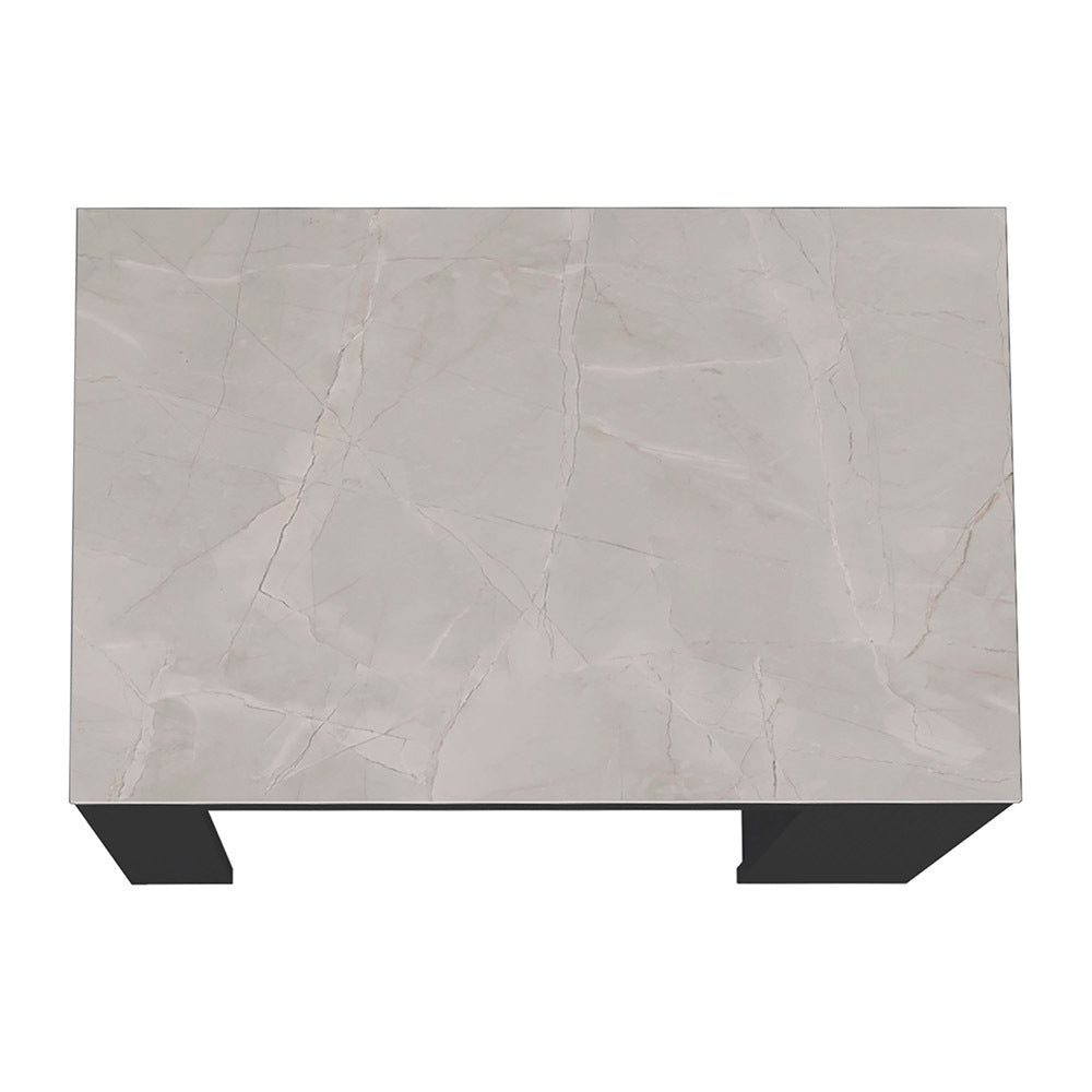 Kitchen Island Doyle, Three Side Shelves, Black Ibiza Marble Color Finish Black Particle Board