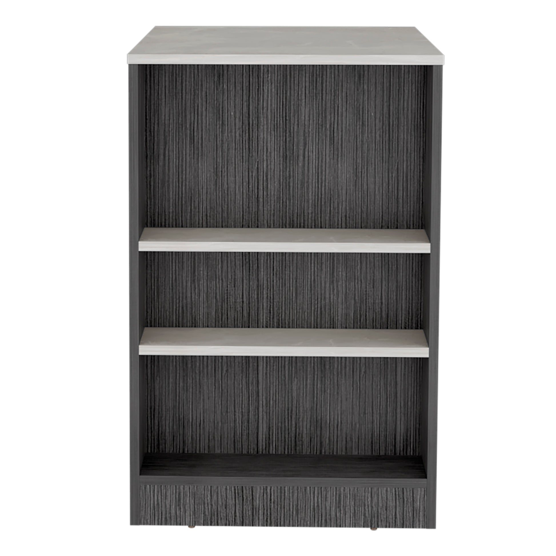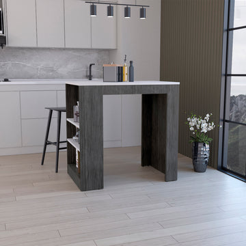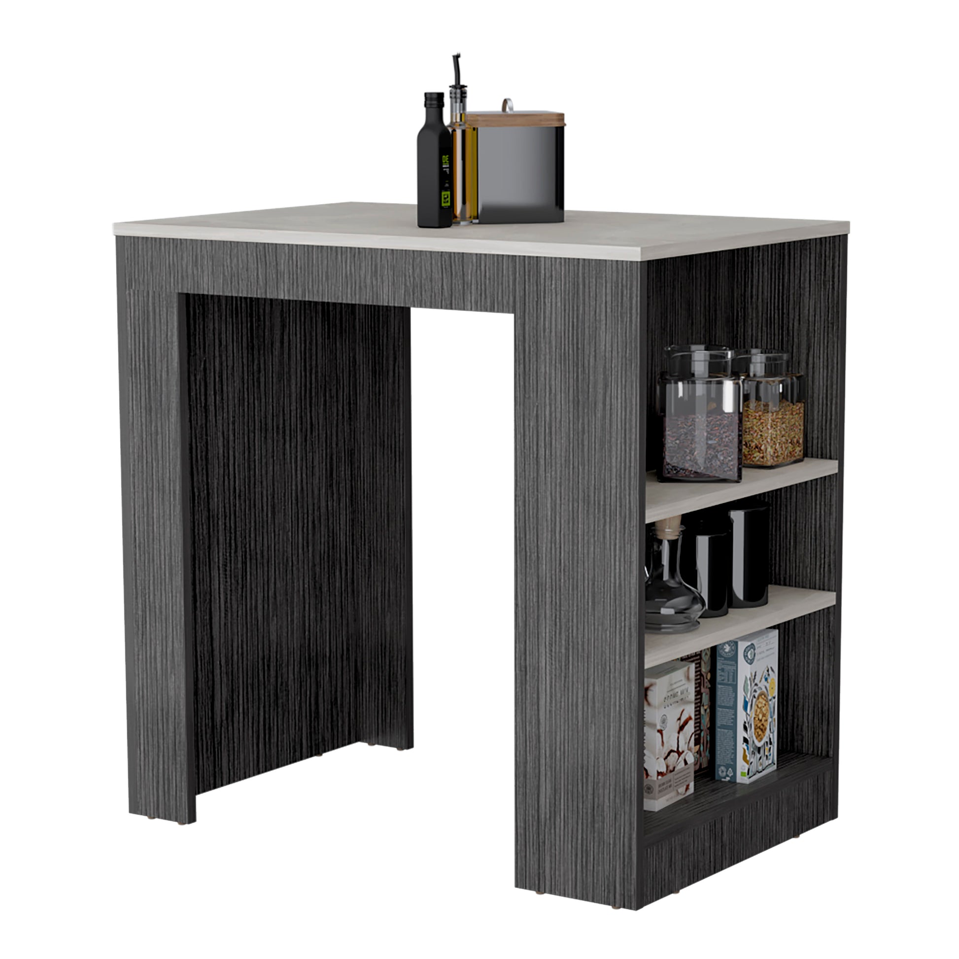 Kitchen Island, Kitchen Bar Table 36" H, 3 Side Shelves, Smokey Oak Ibiza Marble Light Multicolor Particle Board Pine