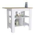 Kitchen Island Pompeya, Three Shelves, White Finish Multicolor Particle Board