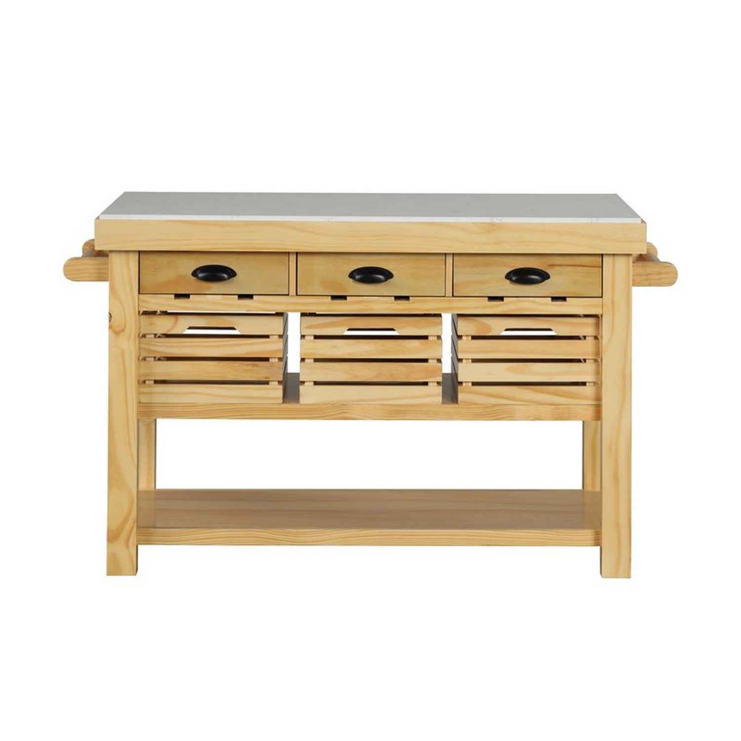 Kitchen Island With 3 Pull Out Baskets And Drawers, Brown Brown Wood